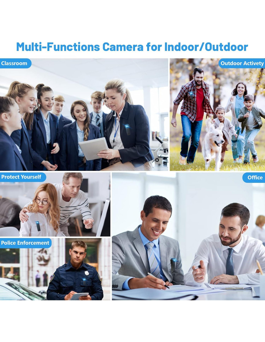 - Amplia Memoria de 64GB: Tarjeta de memoria reemplazable de hasta 128G; Con una colosal memoria interna de 64GB, guarda 36 horas de grabaciones en paz. Una vez alcanzada la capacidad, la cámara corporal sobrescribe inteligentemente los archivos más antiguos, asegurando un registro continuo.