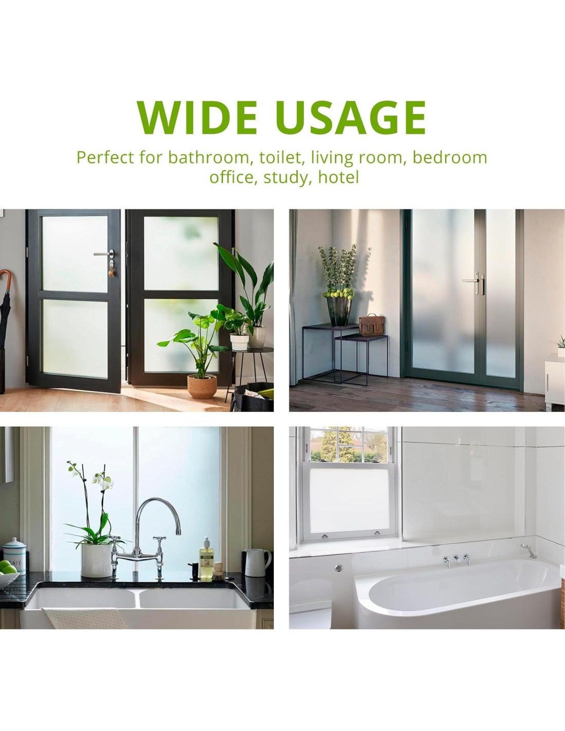 - Sin residuos adhesivos: esta película de privacidad para ventanas de vidrio tiene un excelente recubrimiento de adherencia estática. No se necesita adhesivo, solo agua es necesaria para completar la instalación. Por lo tanto, nuestra película de privacidad para ventanas de baño es fácil de quitar sin residuos y se puede reutilizar. A diferencia de otras películas de privacidad de ventana adhesivas, no hay burbujas ni complicaciones para limpiar las ventanas incluso en uso repetido.