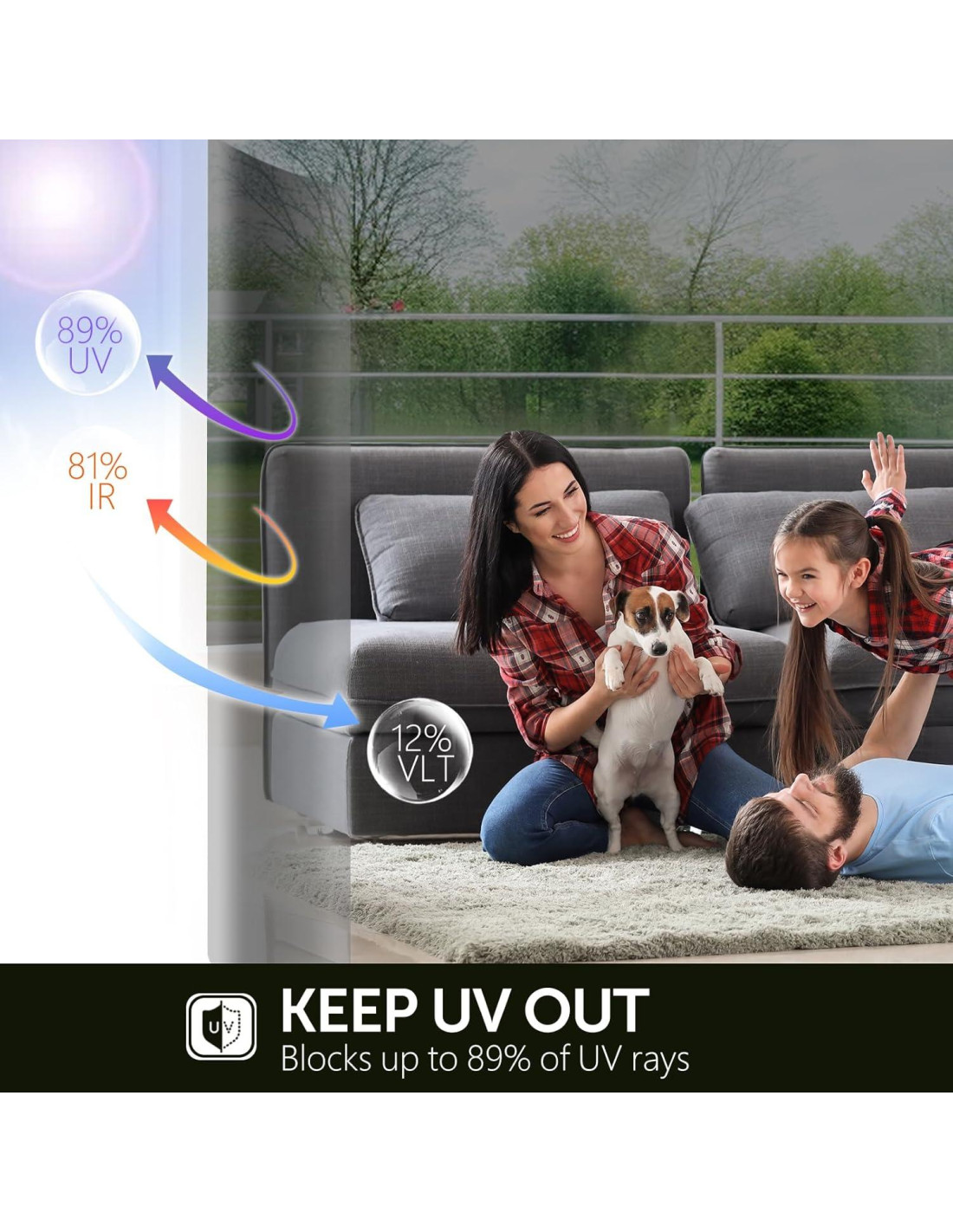 - PROTECCIÓN UV Y ANTI REFLEJO: Esta película tintada para ventanas en el hogar puede bloquear el 89% de los rayos UV y el 81% de los rayos infrarrojos, protege tu piel de los rayos UV y previene el desvanecimiento y envejecimiento de los muebles. 12% VLT significa que algo de luz visible puede entrar en la habitación, no solo para bloquear la luz intensa y reducir el deslumbramiento, sino también para mantener tu buena vista.
