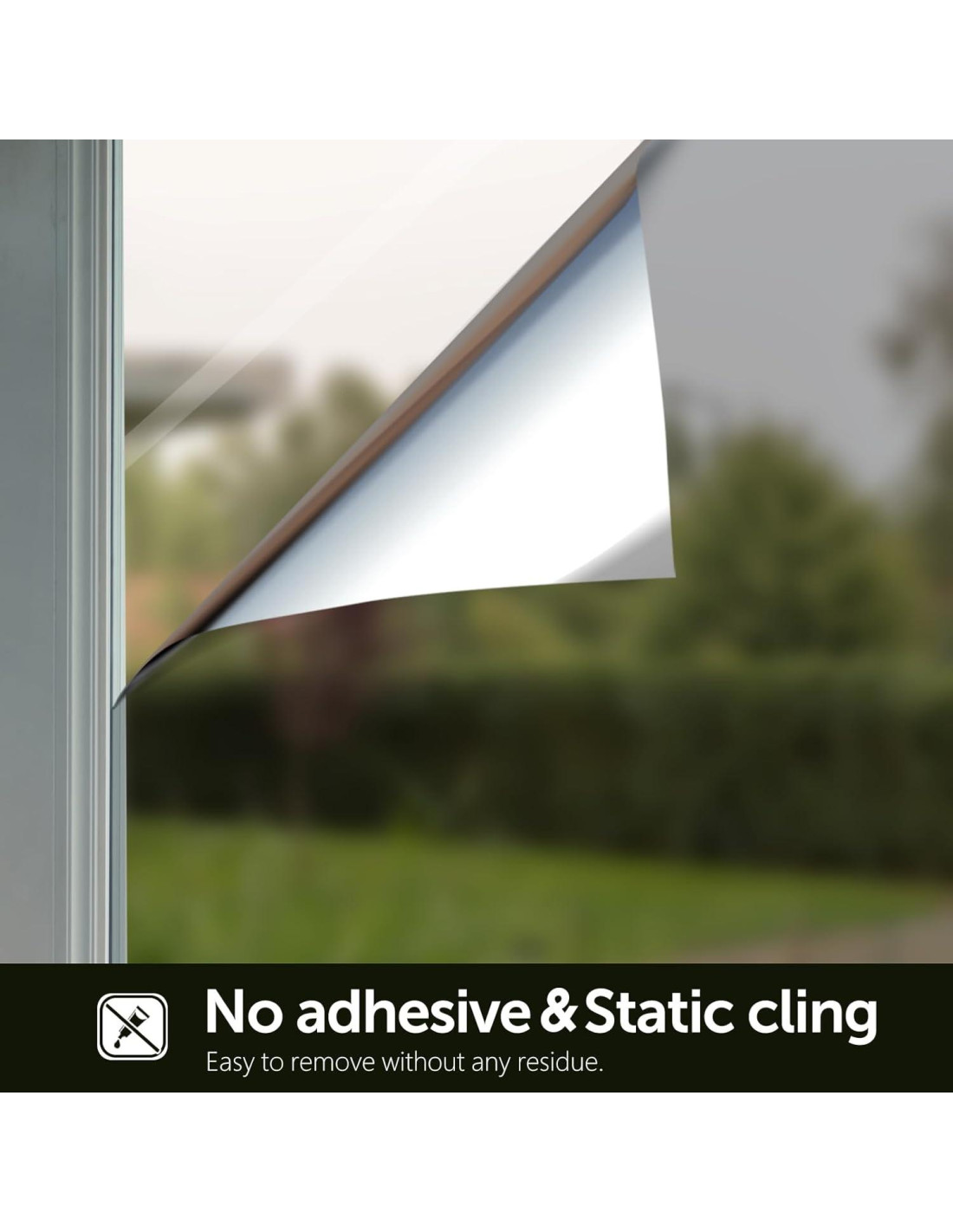 - SIN PEGAMENTO Y FÁCIL DE INSTALAR: Sin diseño adhesivo, esta película de ventana reflectante puede adherirse firmemente a la superficie de vidrio rociando mucha agua y raspando el exceso de burbujas de aire y agua, también se puede quitar fácilmente sin dejar marcas o residuos en el vidrio.