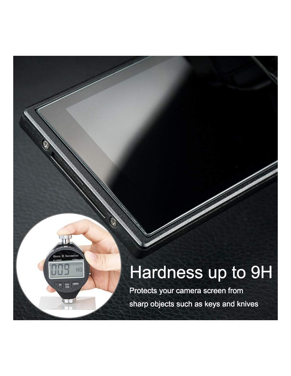 - 9HD & 95% de transmisión de luz alta: La transmisión de luz del 95% ayuda a la visualización clara de la imagen en la pantalla LCD. Dureza de hasta 9H, protege la pantalla de tu cámara de objetos afilados como llaves y cuchillos, etc.