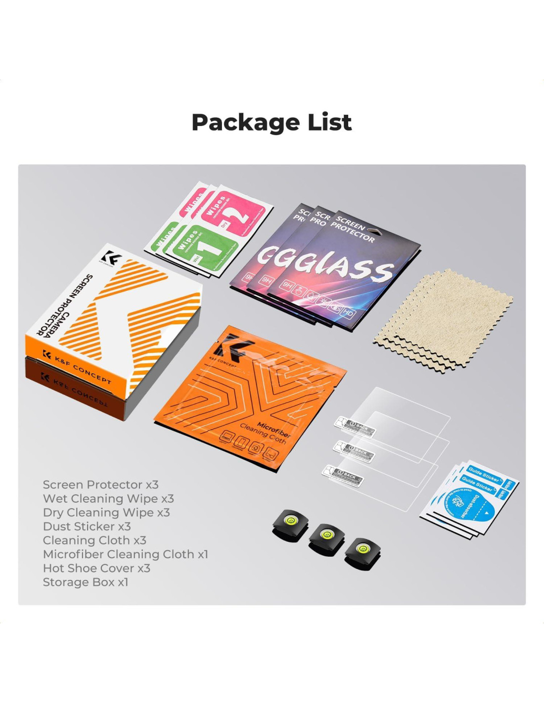 - [Protección Diaria] - Kit de Protector de Pantalla K&F CONCEPT producido con material de vidrio templado a prueba de explosiones de alta calidad, con una dureza de 9H, fuerte resistencia a desgarros y rayones, y protege la pantalla y el lente de la cámara de rayones, raspaduras y golpes, etc.