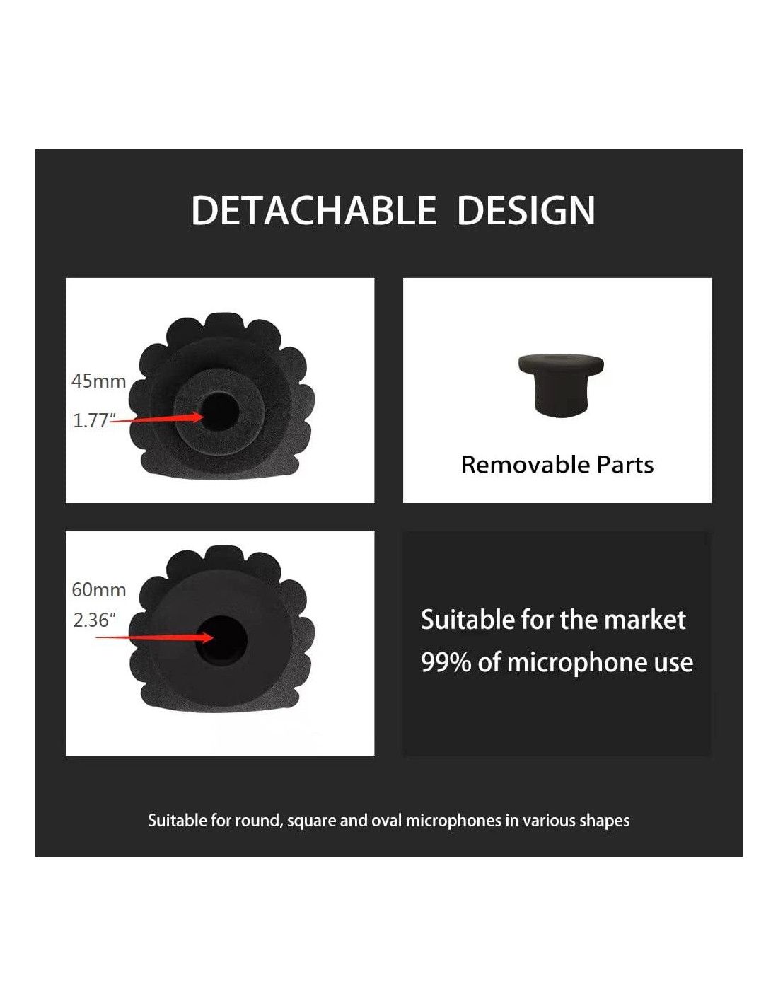- Adecuado para la mayoría de los micrófonos: El parabrisas es adecuado para la mayoría de los micrófonos USB, micrófonos de condensador y micrófonos de banda líder con un diámetro de chaqueta entre 45-60mm.