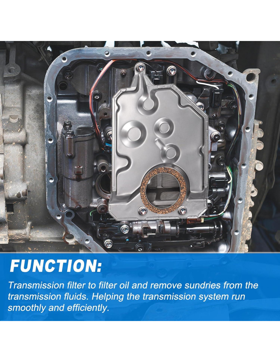 - Características: Filtro de aceite de transmisión para filtrar el aceite y eliminar impurezas de los fluidos de transmisión. Mantiene los fluidos de transmisión limpios y previene que el cuerpo de la válvula y otras partes se obstruyan. Efectivamente extiende la vida útil del kit de transmisiones.
