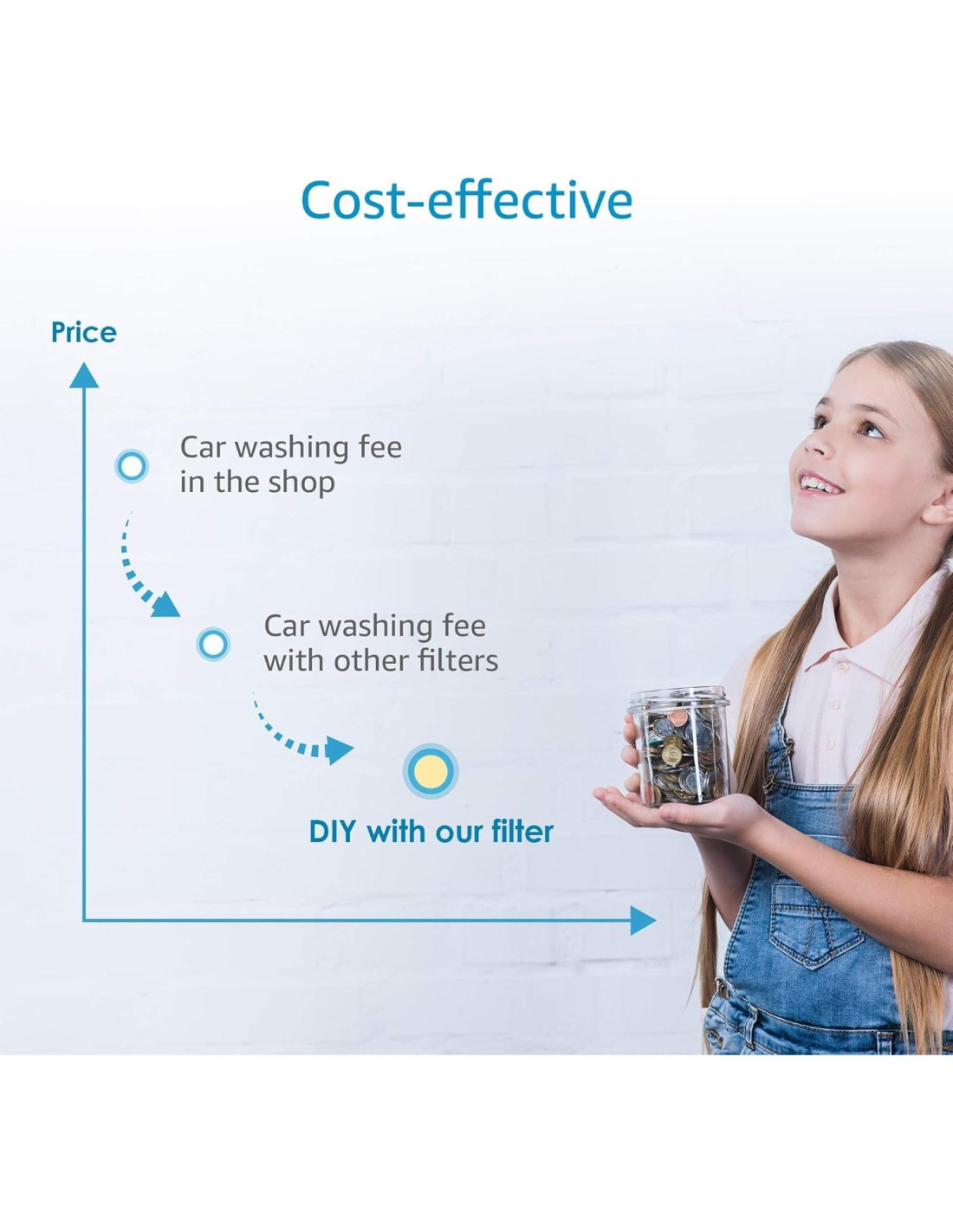 - Más Rentable: El filtro de lavado de autos inline tiene un costo promedio semanal más bajo que los costosos servicios de lavado de autos, ahorrándote dinero. La fórmula mejorada prolonga la vida útil y el almacenamiento del filtro, asegurando un uso duradero, limpio e higiénico.