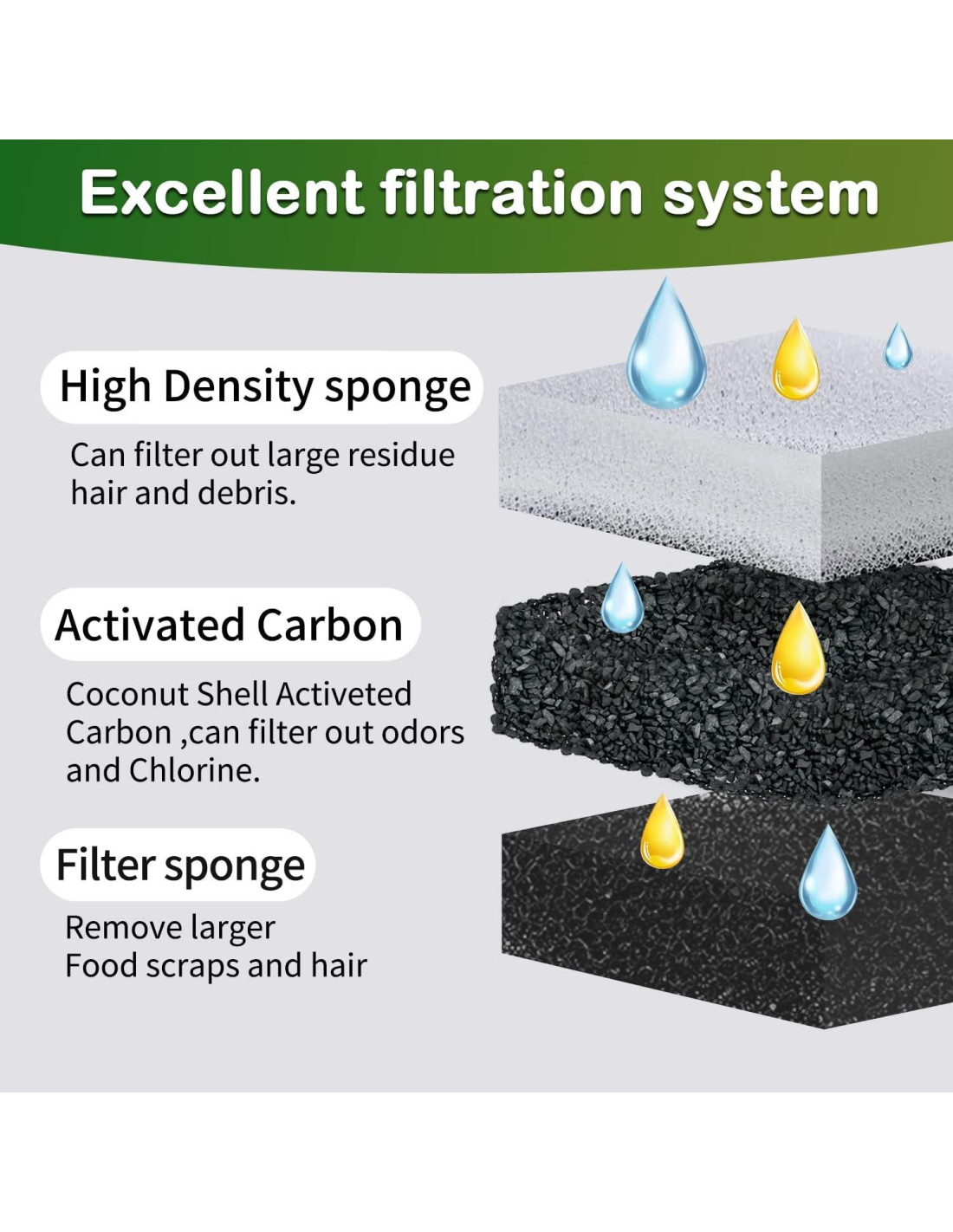 - [Filtro] Los filtros de fuente para gatos están hechos de esponja de alta densidad y carbón activado, pueden filtrar eficazmente el pelo, impurezas y mantener el agua fresca.