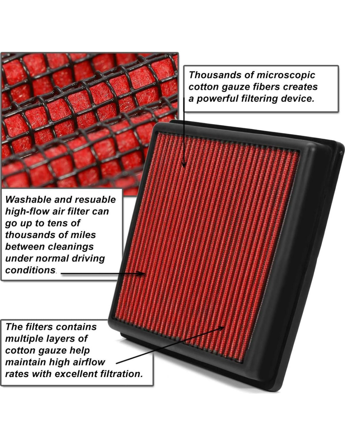 ¿Mejora la aceleración y la potencia? Está diseñado para aumentar la potencia y la tasa de aceleración. ¿Cuántas millas antes de que se requiera limpieza? Dura hasta 50,000 millas (80,467 kilómetros) antes de que se requiera limpieza dependiendo de las condiciones de conducción. ¿Es tan simple limpiar y reutilizarlo como se anuncia? Sí, consulte el manual para el mejor enfoque.