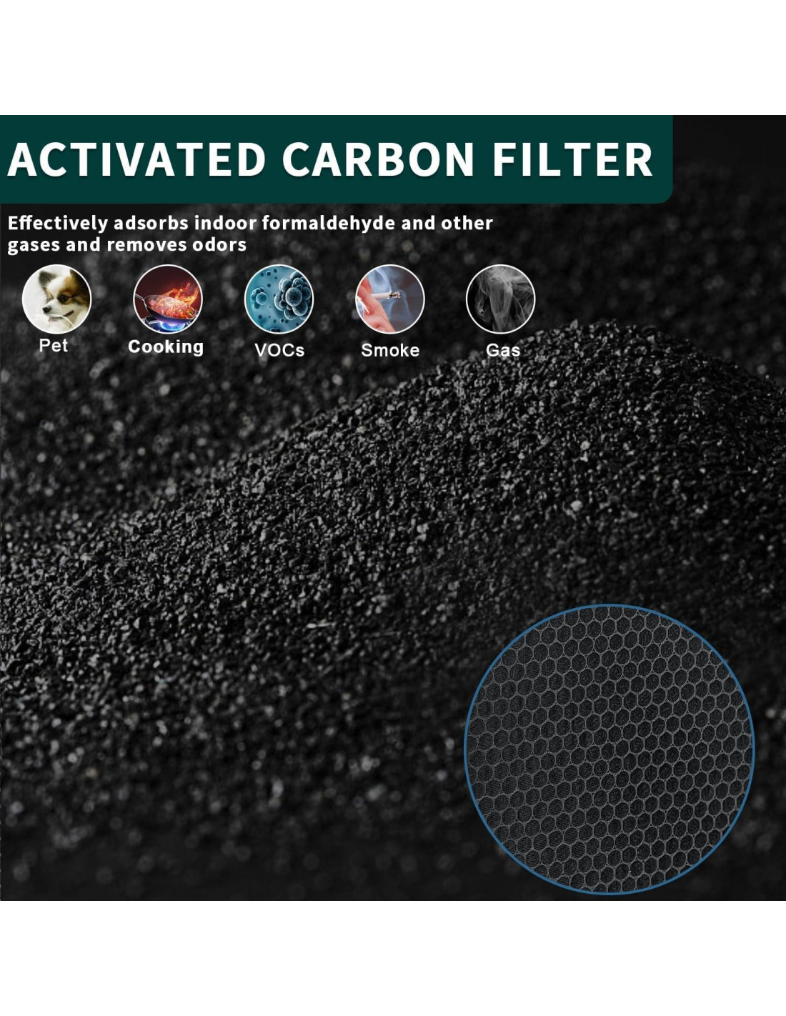 - [FILTRACIÓN 2 EN 1] 2 capas de filtro de carbón activado para atrapar cabello y partículas más grandes hasta partículas finas y olores, permitiendo que solo pase aire limpio
