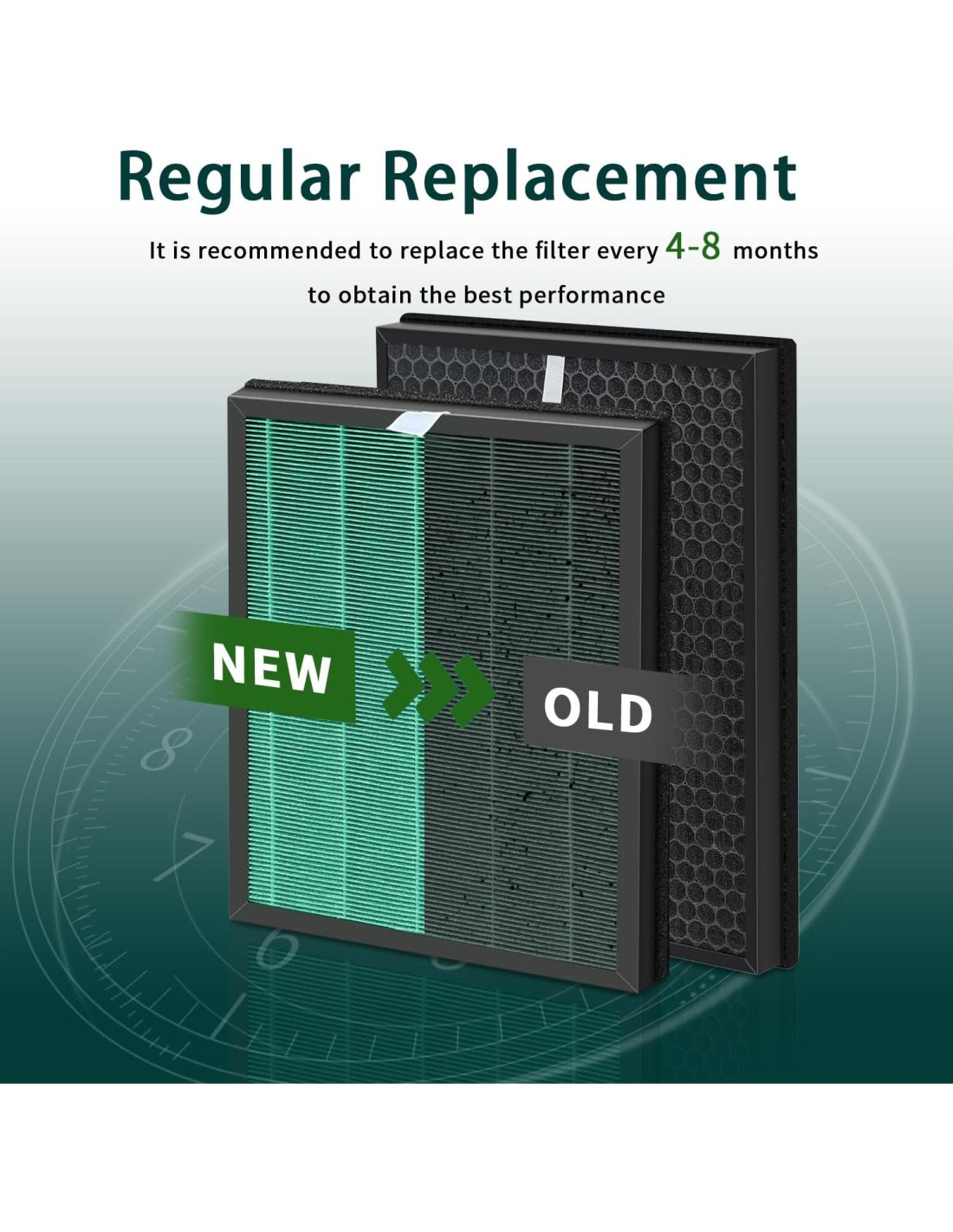 - [PAQUETE DE VALOR] Incluye 1 filtro de reemplazo (con carbón en panal) Para un mejor rendimiento, reemplace el filtro CADA 6-12 MESES o dependiendo de la calidad del aire y la frecuencia de uso