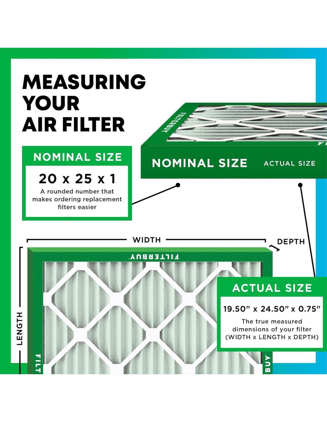 - Filtros de aire de repuesto 20x25x1 para su horno, aire acondicionado, bomba de calor o sistema HVAC (tamaño real: 49.53 x 62.23 x 1.91 cm)