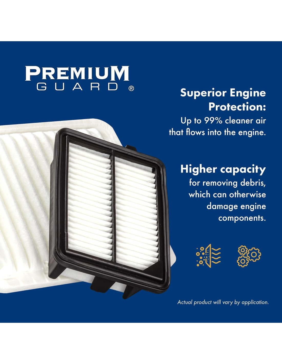 Los filtros de aire automotrices Premium Guard son probados bajo los más altos estándares, asegurando un rendimiento óptimo tanto del filtro de aire como del motor de su vehículo. Nuestras estrictas prácticas de prueba abordan tres factores que afectan el rendimiento general del filtro: eficiencia, restricción del flujo de aire y capacidad de retención de polvo. Al ofrecer alta eficiencia y alta capacidad, nuestros filtros de aire para motor maximizan el flujo de aire a través del filtro hacia el motor, resultando en aire más limpio y una vida útil más larga del filtro de aire. Disfrute de la máxima protección y operación del motor con los filtros de aire Premium Guard.