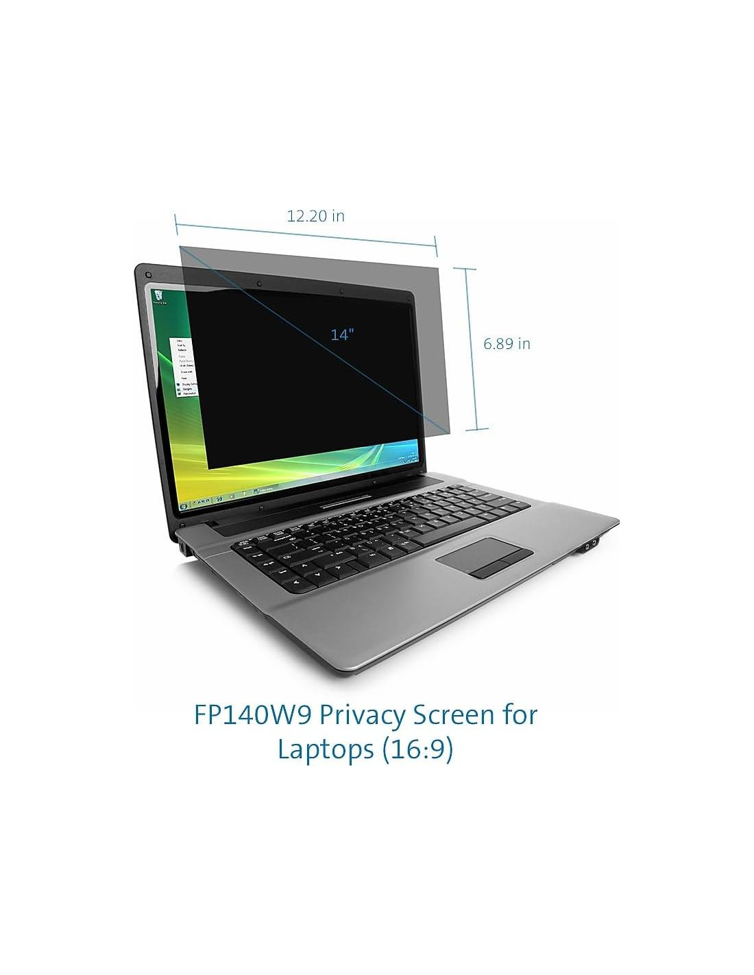 - Diseñada para pantallas de 14 pulgadas con relación de aspecto 16:9; limita el ángulo de visión a +/- 30, ocultando información personal o confidencial de cualquiera que intente mirar desde el lado