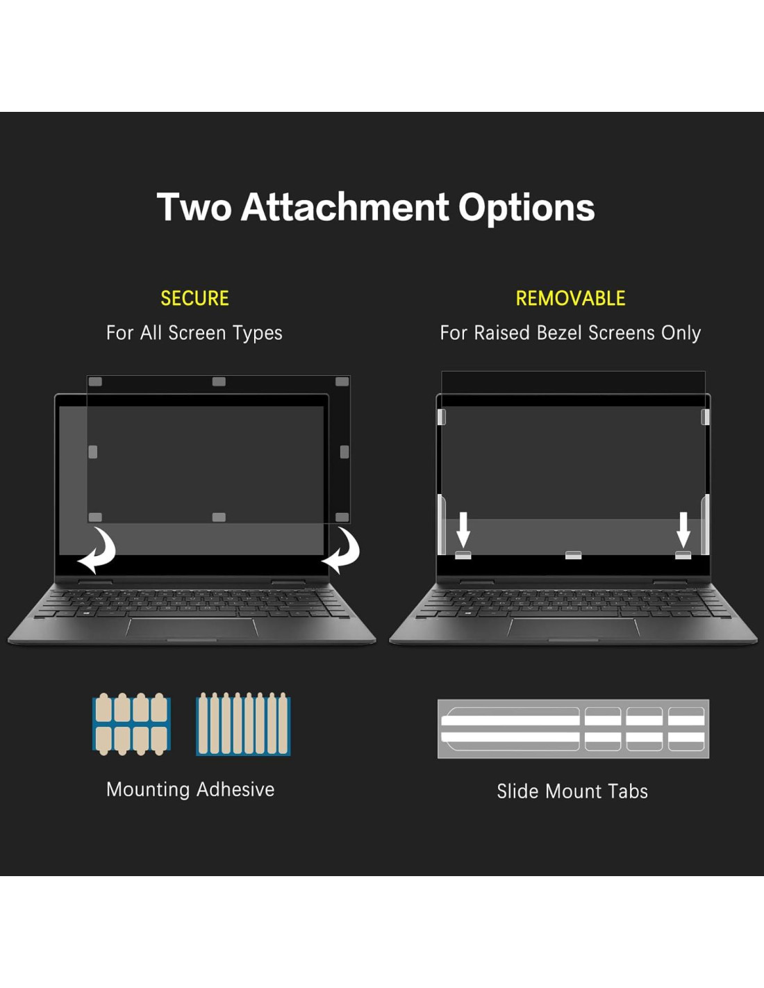 - FÁCIL DE INSTALAR: La pantalla de privacidad para laptop tiene 2 opciones de instalación, puedes usar la pantalla de privacidad de 14 pulgadas ya sea que el marco de tu monitor esté elevado o al ras con la pantalla. Puedes completar la instalación en 30 segundos según las instrucciones del manual de fácil instalación. Si el marco de la pantalla del monitor está elevado, puedes elegir las opciones de instalación y . Si la pantalla del monitor está al ras con el marco, solo se puede usar la opción de instalación .