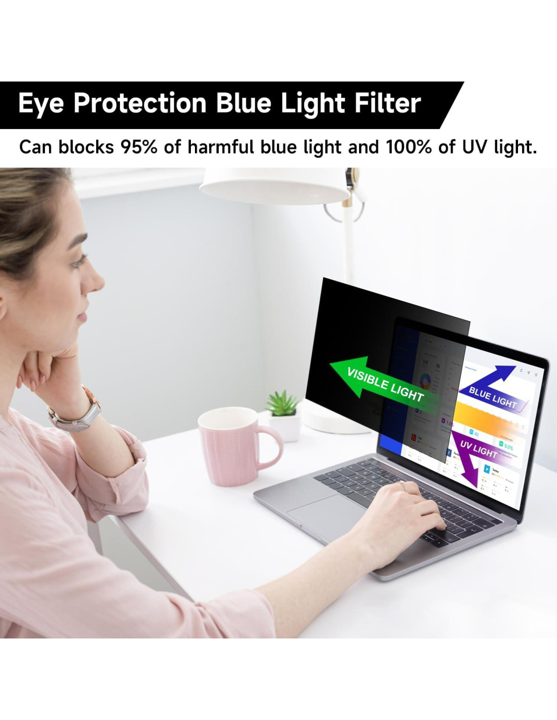 - [Reduce la Fatiga Visual] El filtro de privacidad para laptop de 16 pulgadas cuenta con un diseño de capa antirreflejo y filtrado multicapa de luz azul dañina. Esta tecnología reduce la fatiga visual, dolores de cabeza y otros efectos adversos asociados con el uso prolongado de computadoras. La superficie mate previene el deslumbramiento y la luz reflejada. El protector es perfecto para cualquier persona que pase largas horas frente a una computadora, desde estudiantes hasta profesionales.
