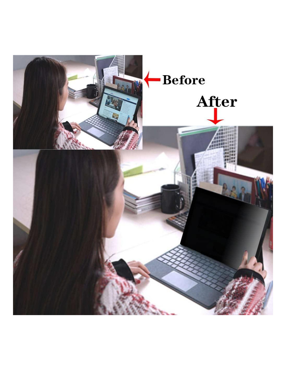- Protección de privacidad excepcional: El rango de ángulo de visión del filtro de privacidad YBP es de 30+/-5 en los lados izquierdo y derecho (arriba y abajo sin protección de privacidad), los datos solo son visibles frente a la pantalla, y aparecerá una pantalla oscura o negra desde los lados izquierdo y derecho; ideal al trabajar en aeropuertos, transporte público, oficinas, cafeterías u otros lugares públicos.