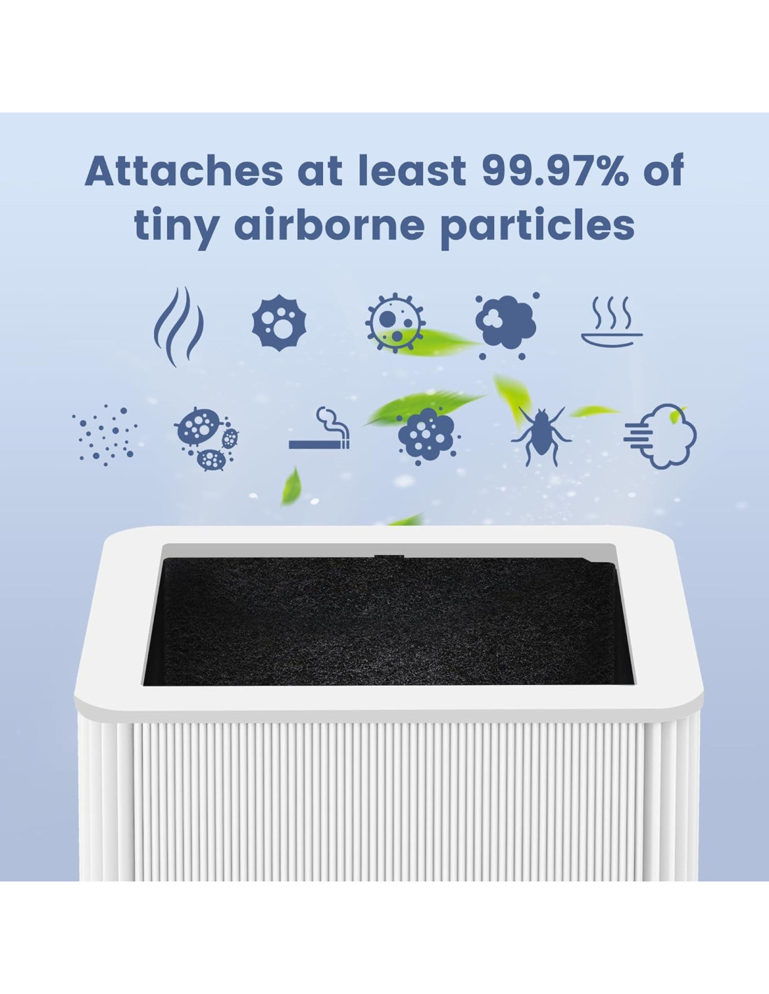 - El Filtro Verdadero H13: Este Filtro Blue Pure 211+ combinado con un sistema de filtración de 2 etapas de alta eficiencia, el filtro frontal absorbe pelaje de mascotas y desechos de la vida. El filtro verdadero H13 es capaz de atrapar el 99.97% de las partículas en el aire tan pequeñas como 0.1 micrones, el filtro de carbón activado le ayuda a resolver el problema de olores desagradables, como olores de cocina, humo, olores de mascotas y compuestos orgánicos volátiles (COV).