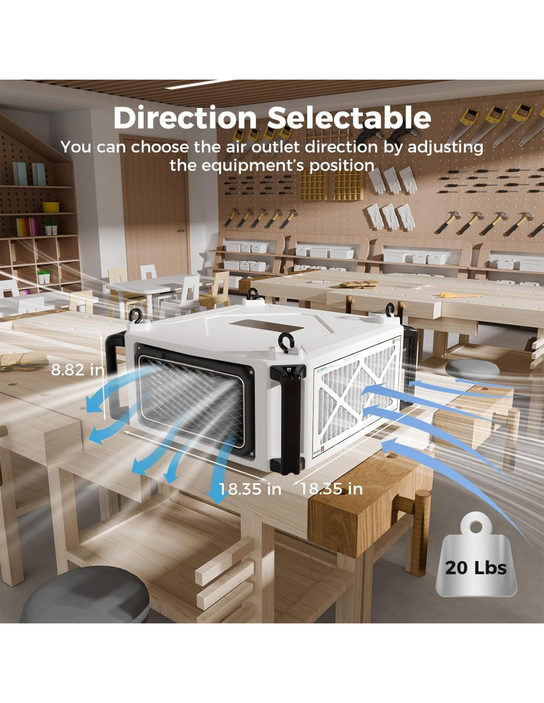 - Ventilador de Vórtice Fuerte: El Sistema de Filtración de Aire para trabajos en madera está equipado con un fuerte ventilador de vórtice, que genera un fuerte flujo de aire al trabajar, y mantiene un estado de alta presión estática incluso si el filtro cubre una gran cantidad de virutas de madera. Tiene selección de velocidad de dos etapas. Adecuado para taller de tallado en madera, trabajos en madera, garaje y uso en casa.