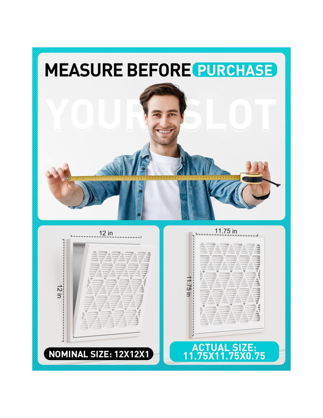 - Compatible Universalmente: El kit de filtro de aire refillable AErovivo 12x12x1 funciona con la mayoría de los dispositivos de AC HVAC y calefacción. Calificación MERV 8 (comparable con MPR 600 y FPR 5). El tamaño real del marco del filtro es 29.85x29.85x1.91 cm.