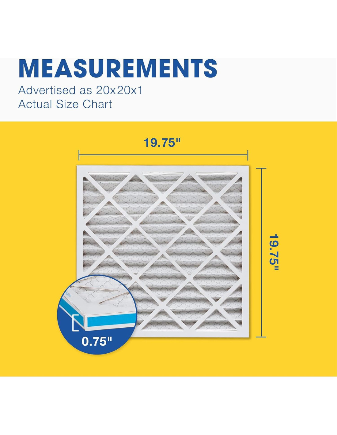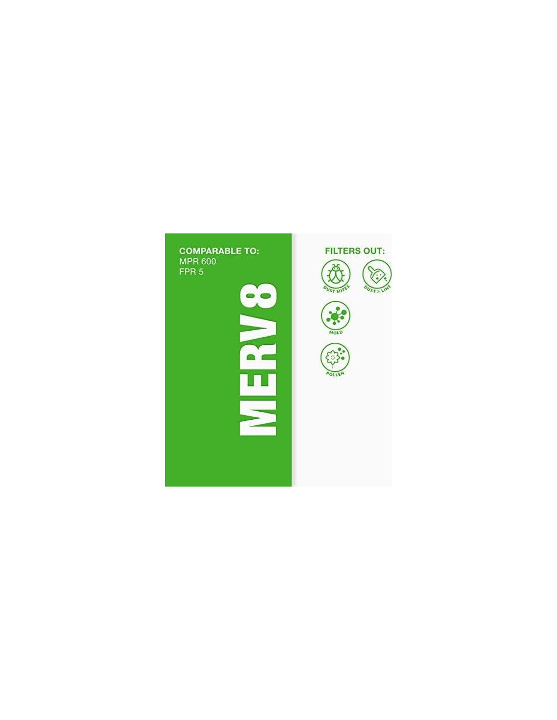 Filtros de Aire Plisados Aerostar 20x20x1 MERV 8 (Tamaño Real: 19 3/4" x 19 3/4" x 3/4"; 50.17 cm x 50.17 cm x 1.90 cm) - Paquete de 4. Los filtros MERV 8 son comparables a MPR 600 y FPR 5. Diseñados para una eficiencia de filtración superior, estos filtros están hechos con material sintético cargado electrostáticamente que atrae y captura alérgenos entre 0.3 - 1.0 micrones, incluyendo pelusa, ácaros del polvo, esporas y polen. Los filtros Aerostar son un paso simple y rentable hacia un ambiente hogareño más saludable, libre de alérgenos y partículas en el aire que pueden desencadenar varios síntomas de alergia y asma. También mejoran la eficiencia de su unidad de HVAC y, por lo tanto, reducen los costos de mantenimiento y servicios públicos, al eliminar la suciedad y reducir la tensión en el motor. Para obtener los mejores resultados, cambie el filtro cada 60 a 90 días, pero aumente la frecuencia a 30 días durante los meses pico de verano e invierno cuando su unidad está trabajando más. Compatible con hornos y unidades de aire acondicionado.