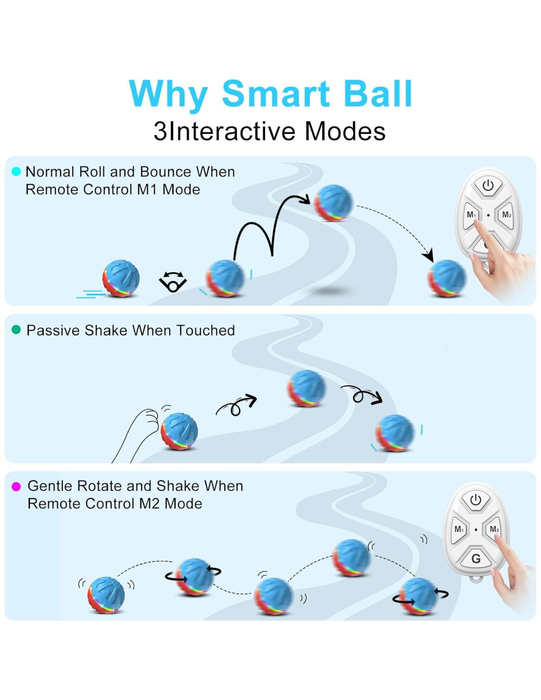 - Experimente un tiempo de juego sin complicaciones con nuestra innovadora bola interactiva para perros. Simplemente gire la bola para encender el interruptor, y estará listo para tomar el control con el control remoto siempre que su cachorro esté ansioso por jugar. El sensor de movimiento incorporado permite que su perro disfrute de tiempo de juego en solitario, incluso cuando usted está ocupado. Además, la bola rodante activa cuenta con luces LED RGB coloridas que capturan continuamente la atención de su perro.