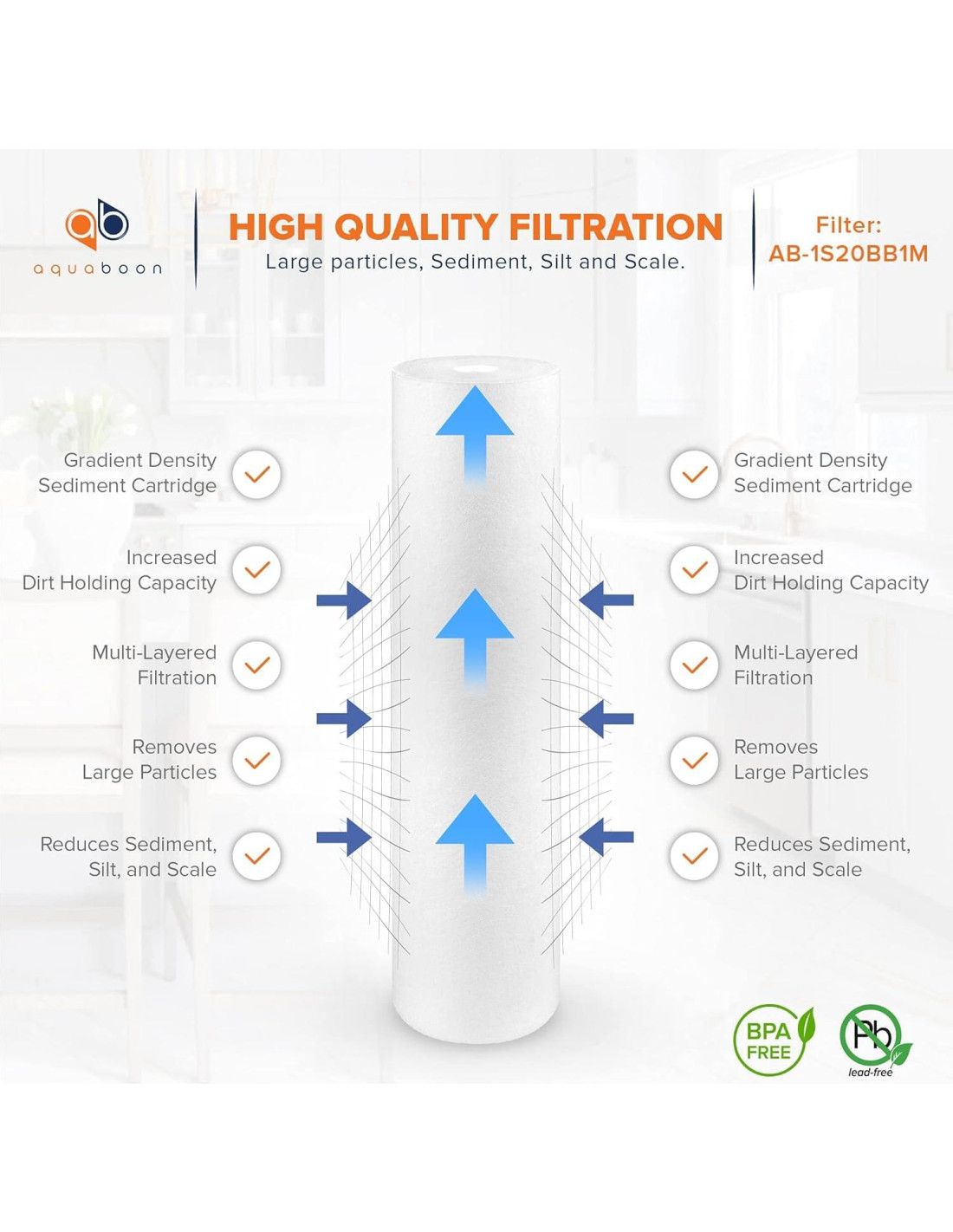 - Tecnología de Filtración de Triple Capa: El diseño avanzado de este filtro de agua de 20 x 4.5 presenta capas distintas de escasez, compactación y precisión, filtrando efectivamente contaminantes hasta 1 micrón. Disfruta de una filtración de agua de pozo superior en múltiples niveles.