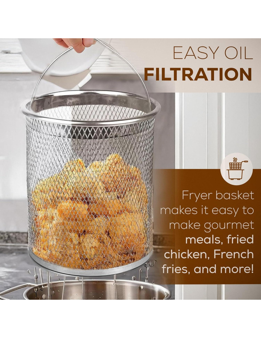 - Diseño multifuncional: Esta olla filtradora de aceite de acero inoxidable funciona como freidora, colador, tetera y recipiente de almacenamiento de aceite. Es perfecta para freír, vaporizar y filtrar aceite, convirtiéndola en un imprescindible para chefs caseros.