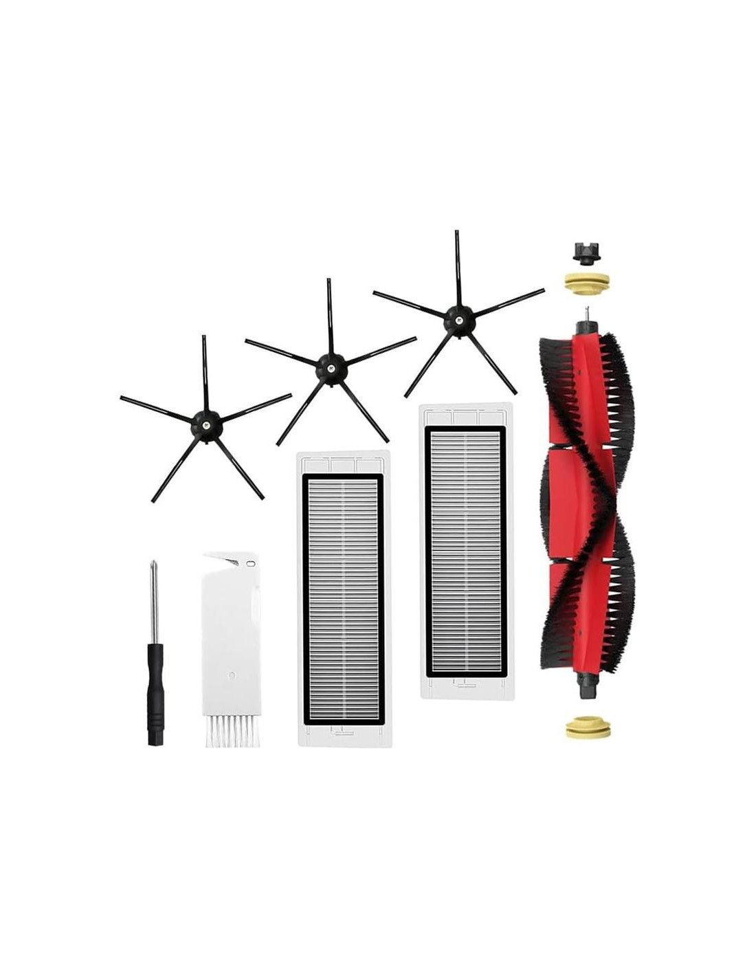 Compatible con Xiaomi Roborock S5 Max/S6 Pure/S6 MAXV/S50/S51/S55/S5/S60/S65/S6. El diseño desmontable hace que estas piezas sean fáciles de usar y limpiar. El filtro premium puede bloquear la mayoría de las partículas dañinas. Mantén tu hogar limpio y ordenado. Nota: Por razones de higiene, no es posible devolver o cambiar el producto. Especificaciones: Color: Multicolor Material: ABS+nylon+fibra Tamaño: 19.5x4 cm, 16.5x5.2 cm El paquete incluye: 1 x cepillo principal 3 x cepillo lateral 2 x filtro 1 x herramienta de limpieza 1 x desarmador