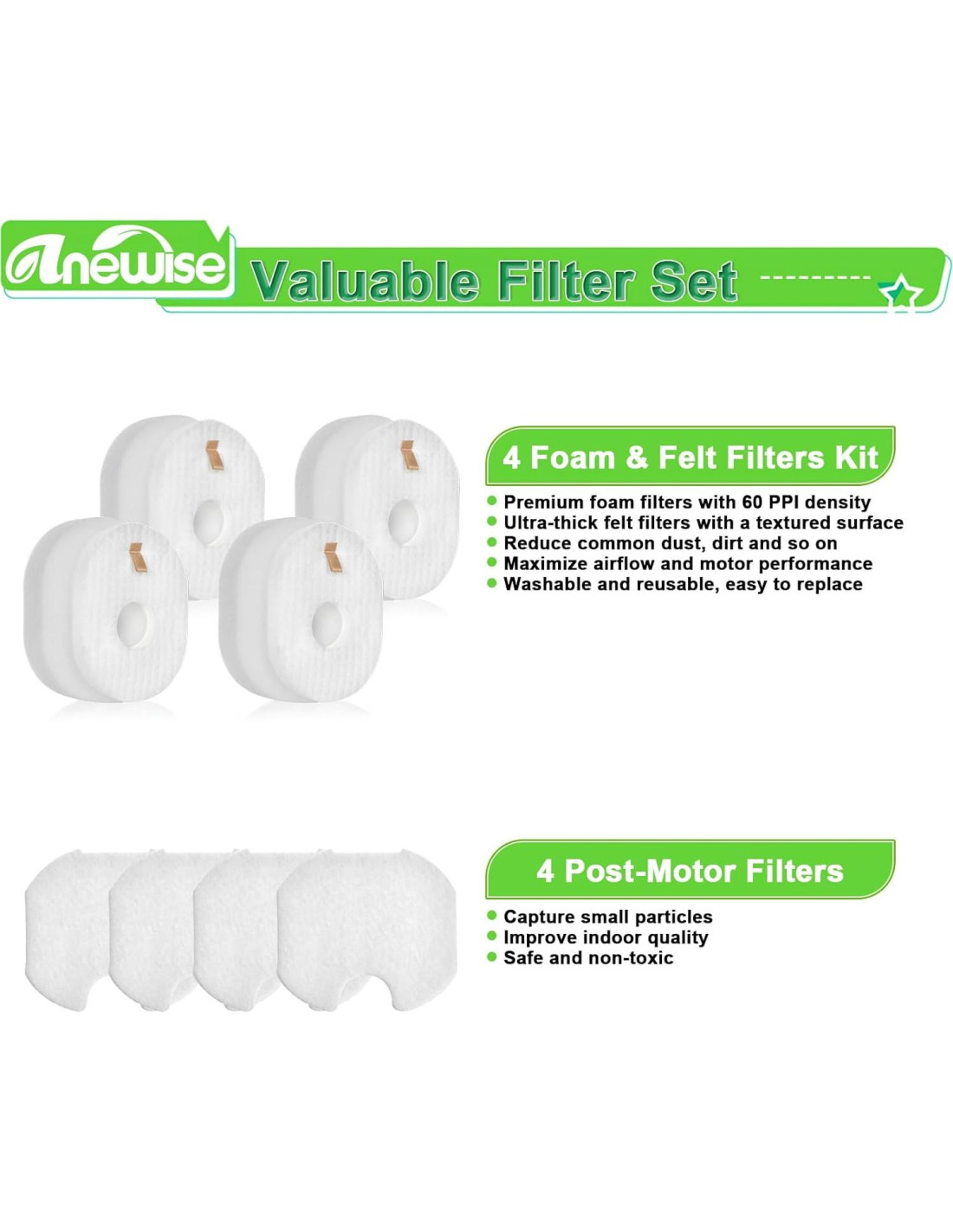 - PAQUETE INCLUIDO: Los filtros de reemplazo para Shark rocket HV301 incluyen 4 filtros post y 4 filtros de espuma y 4 filtros de fieltro como se ve en las imágenes. Filtros premium pueden mantener su entorno limpio y saludable