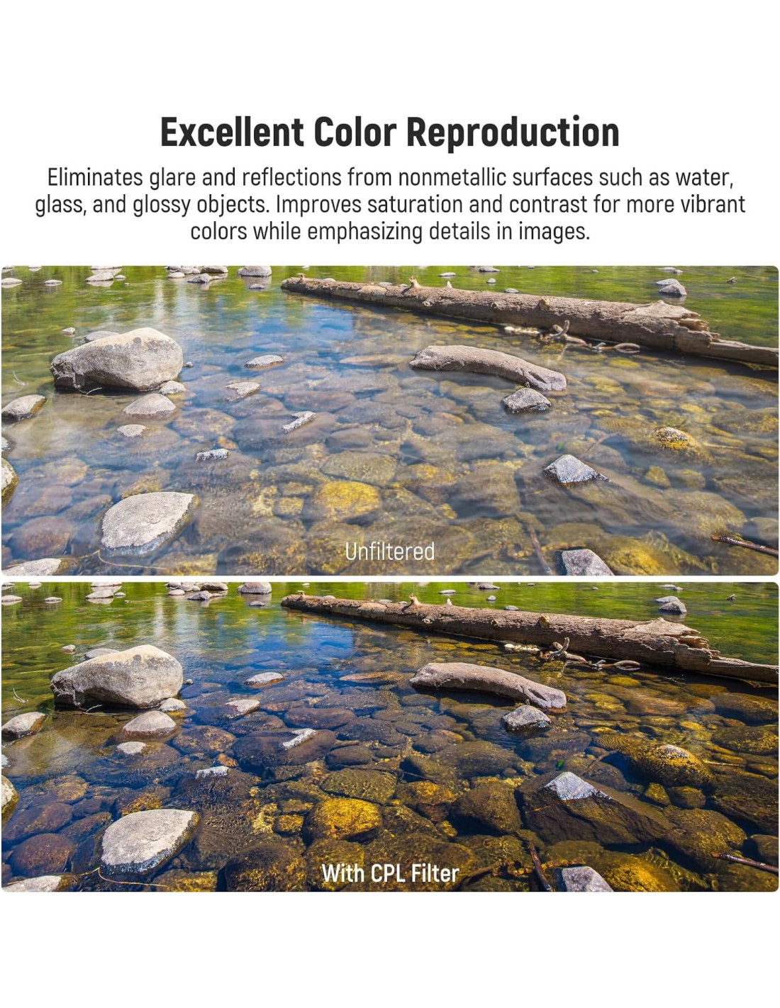 - Reduce Reflexiones No Deseadas Elimina el deslumbramiento y las reflexiones de superficies no metálicas como agua, vidrio y objetos brillantes