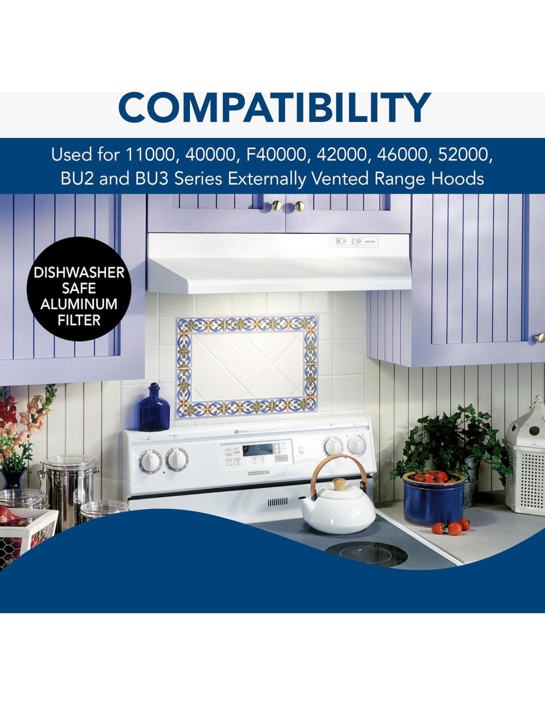 - FILTRO DE VENTILACIÓN VERSÁTIL: Este filtro se adapta a las siguientes campanas extractoras Broan-NuTone: F40000, BUF4; RL6100F, RL6100F-R; RL6100H, RL6200H, RL6300H; SL6200H; 11000; 34000; 35000; 38000; 39000; 40000, BUEZ0; 42000, BUEZ2; 44000, 45000; 46000, Microtek System II; 52000; 53000; ACS, ACS30, NU2, BU2, NU3, BU3