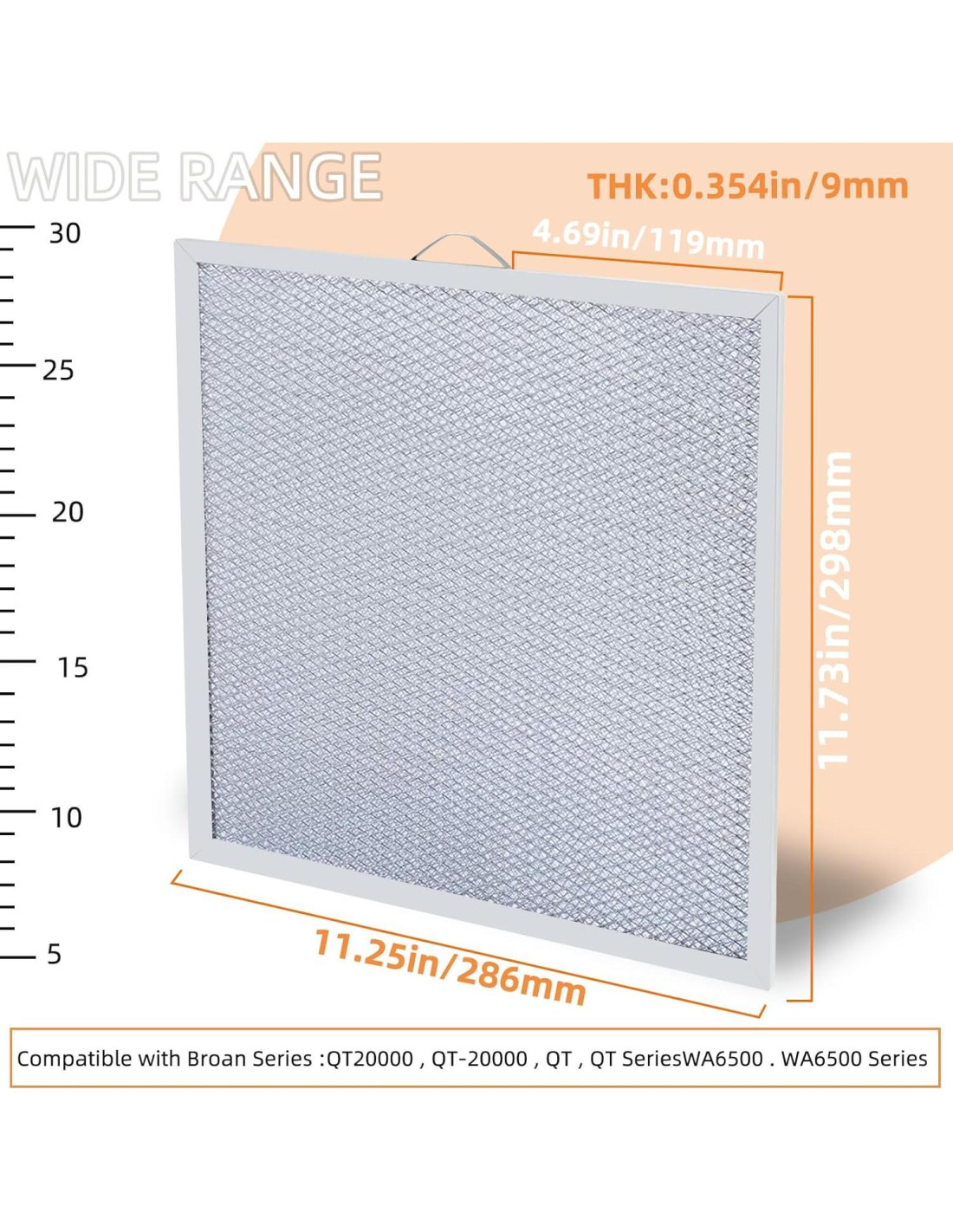 - VERSATILIDAD: Este filtro de campana extractora de primera línea de Broan y filtro de ventilación de cocina Nutone de reemplazo se adapta a una amplia gama de modelos de campanas extractoras. Simplemente verifica las dimensiones (11 1/4 x 11 3/4) para asegurar la compatibilidad con tu campana extractora