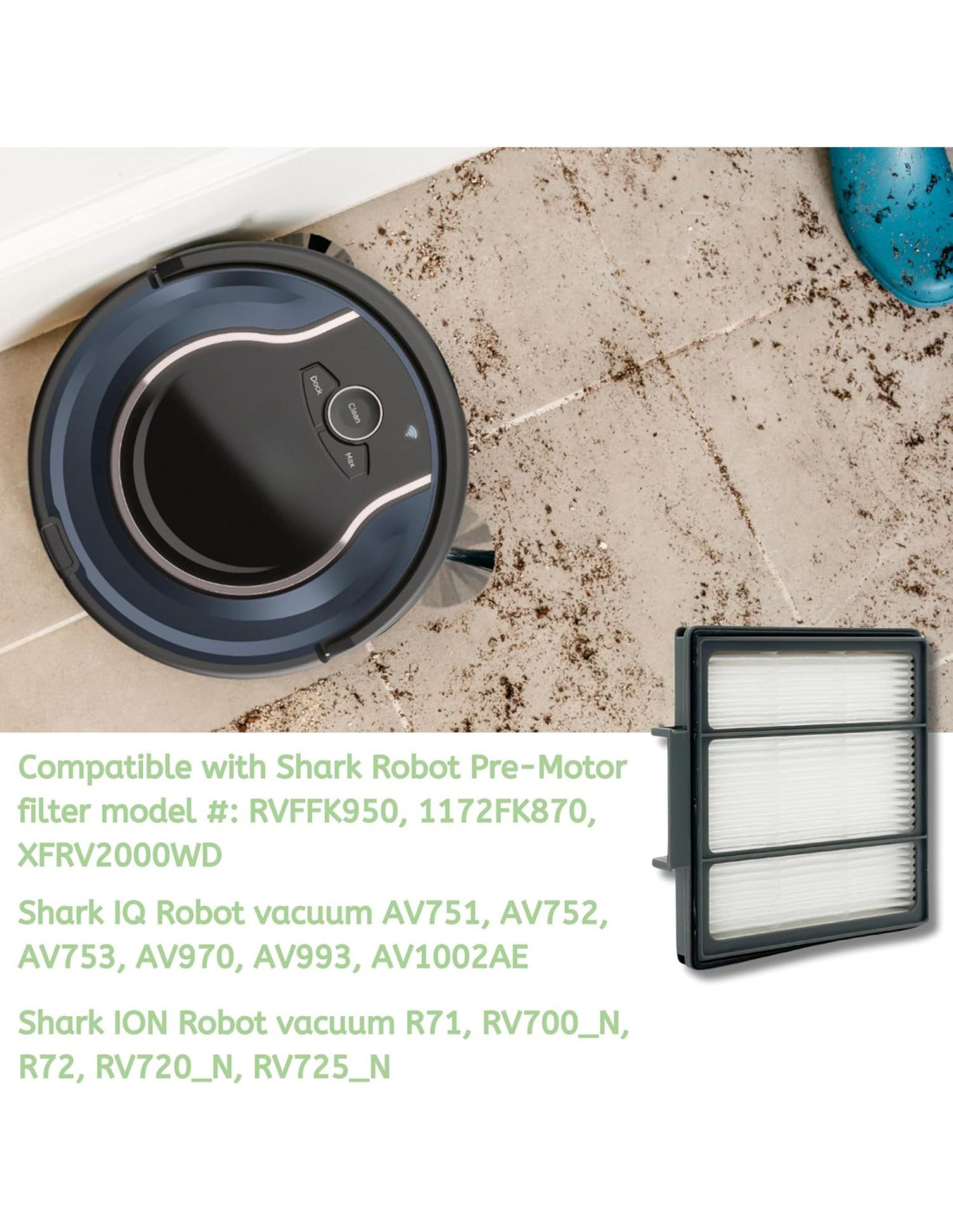 - Compatible: Shark AI Vacmop Robot AV2001, AV2001WD, R200WD, RV2000WD, RV2001, RV2001WD, R211, RV2011. EZ Robot AV911S, RV912S, RV913S. IQ Robot AV751, AV752, AV753, AV970, AV993, AV1002AE, AV1010AE, QR100SB, QR1000SB, QR100SG, QR1000SG, RV1000, R100, RV1000C, RV100S, RV1000S, RV1001, RV1001AE, R101AE, RV1001AEC, UR100S, UR1000SR, UR1005AE. Aspiradora Robot R71, RV700_N, R72, RV720_N, RV725_N, R75, RV750_N, R76, RV761, R77, RV771, R85, RV850, RV850BRN, RV850C, S86, RV850WV, S87, RV851WV, S88, RV860WVC, R87, RV871, RV871C.