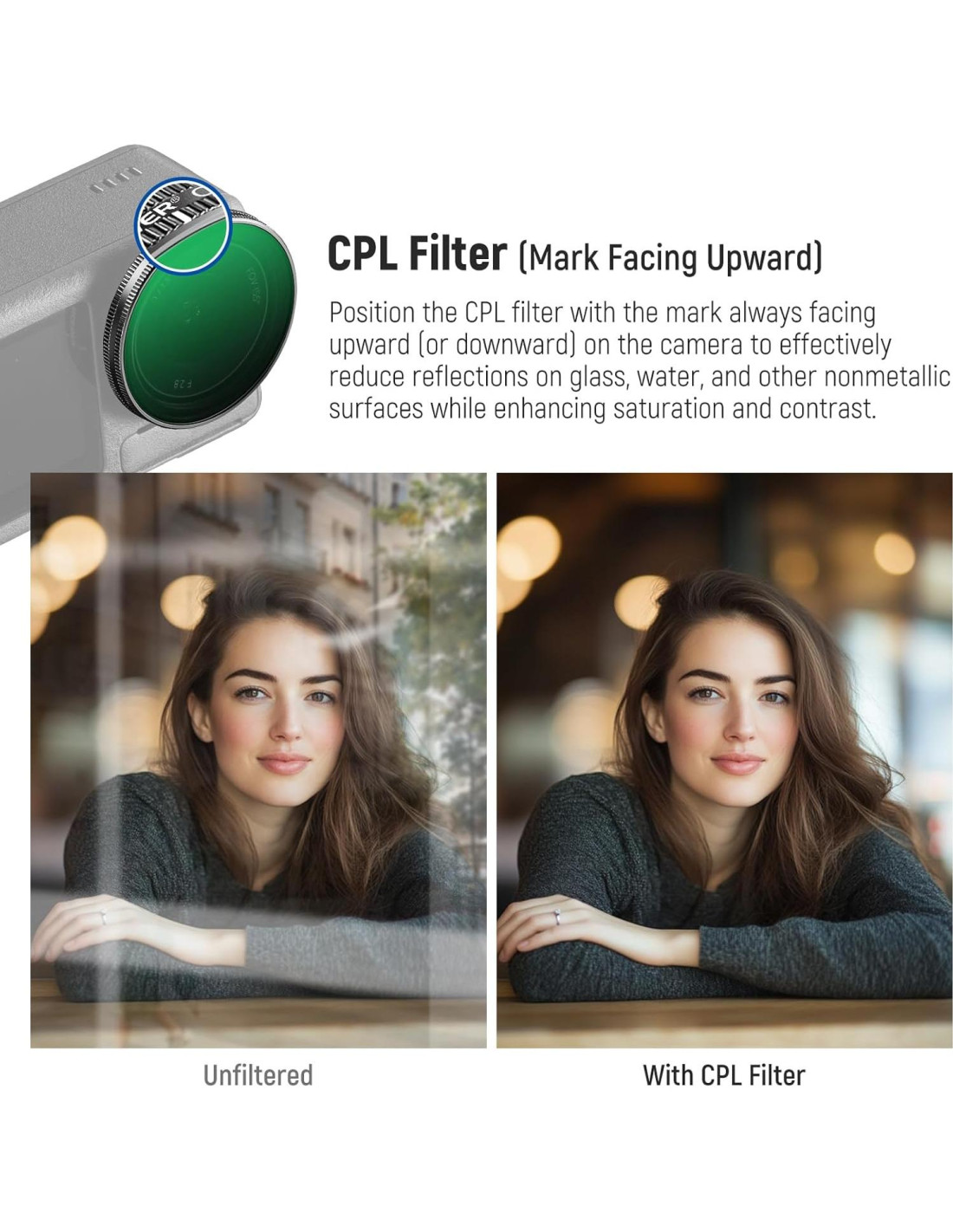 - [Menos Reflexión, Colores Más Ricos] El filtro polarizador circular minimiza la reflexión de vidrio, agua y otras superficies no metálicas mientras aumenta la saturación y el contraste para colores más vibrantes