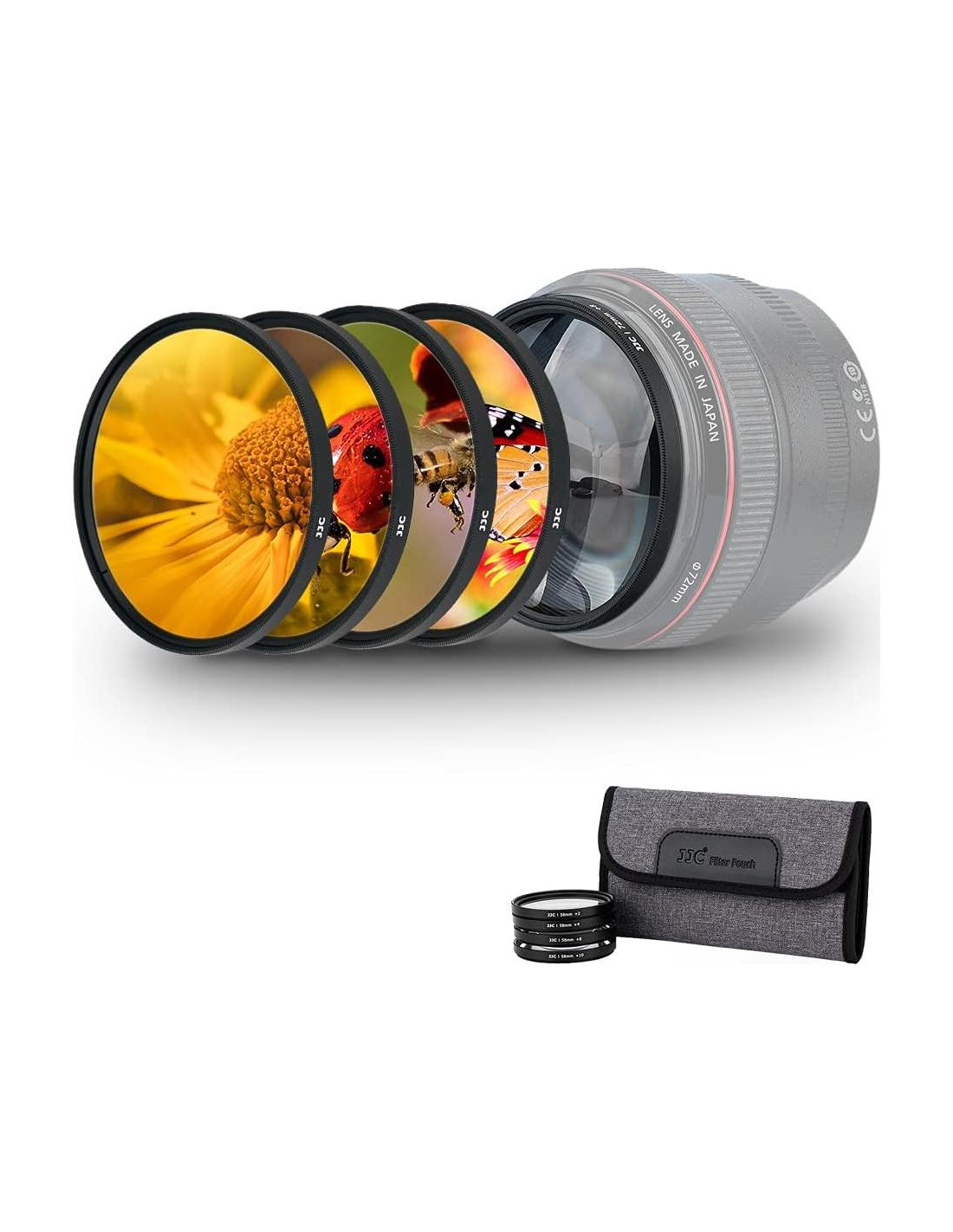 - +2, +4, +8 y +10 filtros de dioptrías están incluidos en un solo conjunto que puede satisfacer tus necesidades de variar y modificar el efecto de acercamiento deseado. (Consejos: No se recomienda apilar o enroscar otros filtros al filtro de acercamiento.)