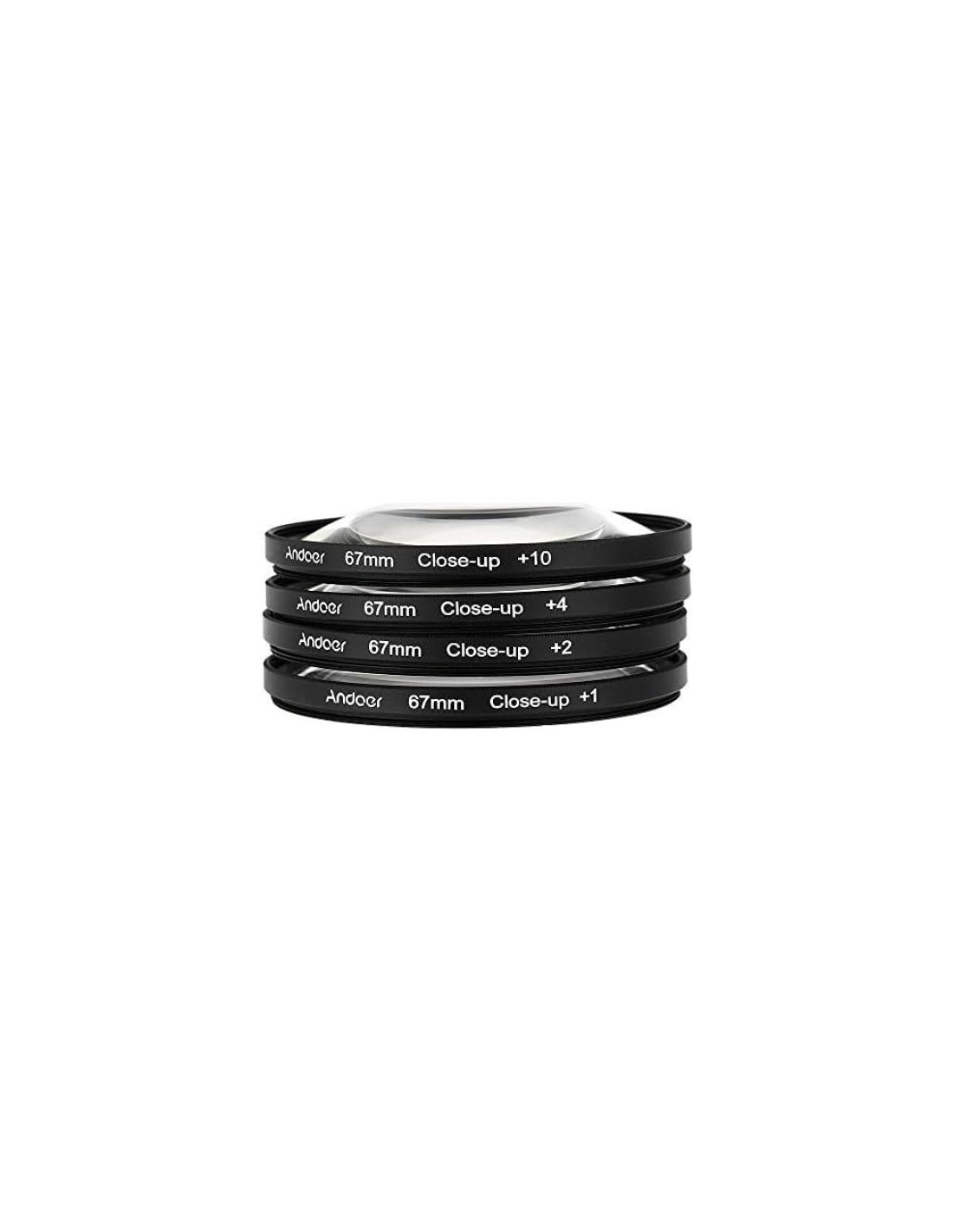 Incluye filtros de primer plano +1, +2, +4, +10 y cartera de filtro de nylon. Con lentes de primer plano puedes acercarte a tu objeto sin realmente acercarte al objeto y disfrutar de la imagen más cercana posible de tu elección. Características: Disminuye la distancia mínima de enfoque de prácticamente cualquier lente a "Lente Macro". Incluye filtros +1, +2, +4, +10 y cartera de filtro de nylon. El diseño de "Doble Rosca" facilita la combinación de filtros de primer plano para crear un efecto macro extremo o agregar otros ópticos, como filtros polarizadores, UV, de calentamiento. Diseñado y producido utilizando óptica de alta definición. Con lentes de primer plano puedes acercarte a tu objeto sin realmente acercarte al objeto y disfrutar de la imagen más cercana posible de tu elección. Especificaciones: Material del filtro: Óptico Diámetro de rosca trasera (se conecta a la lente, rosca macho): 67mm Diámetro de rosca frontal (se conecta filtro adicional, rosca hembra): 67mm Tamaño del paquete: 10 * 9 * 3cm / 3.9 * 3.5 * 1.2in Peso del paquete: 189g / 0.19kg Lista del paquete: 4 * Filtros Macro de Primer Plano (+1 +2 +4 +10) 1 * Bolsa de Transporte