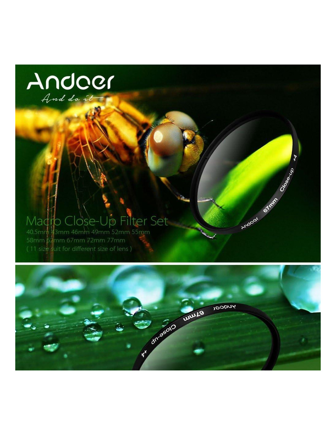 - El diseño de "Doble Rosca" facilita la combinación de filtros de primer plano para crear un efecto macro extremo o agregar otros ópticos, como filtros polarizadores, UV, de calentamiento.