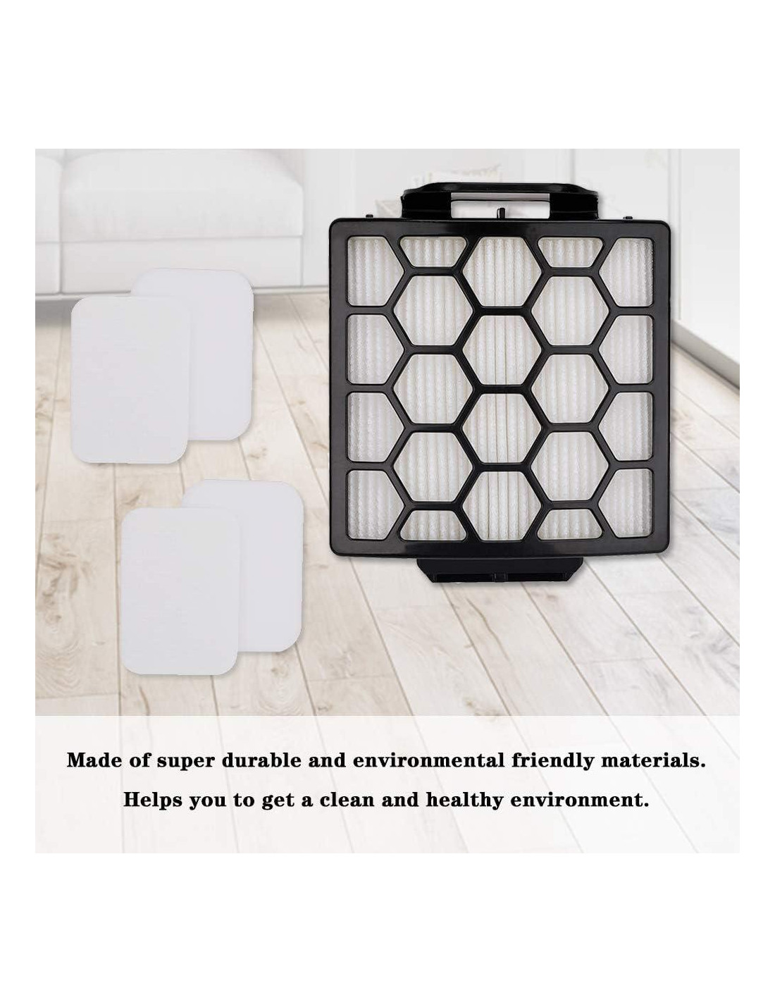 - - Filtración efectiva - El conjunto de filtros de espuma con densidad de 60 PPI y una superficie texturizada, utiliza la tecnología avanzada para absorber pequeñas partículas como comida, cabello, polvo y caspa de mascotas. Los filtros HEPA con eficiencia H12 capturan polen y el 99.97% de las partículas tan pequeñas como 0.3 micrones.