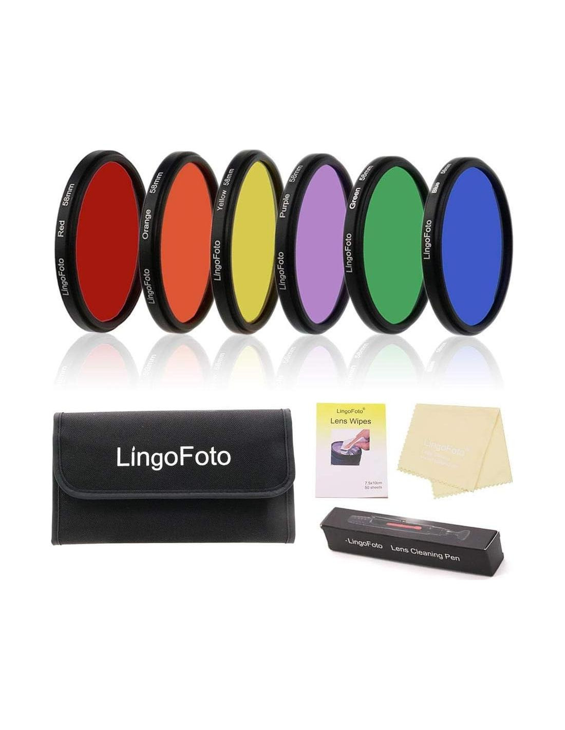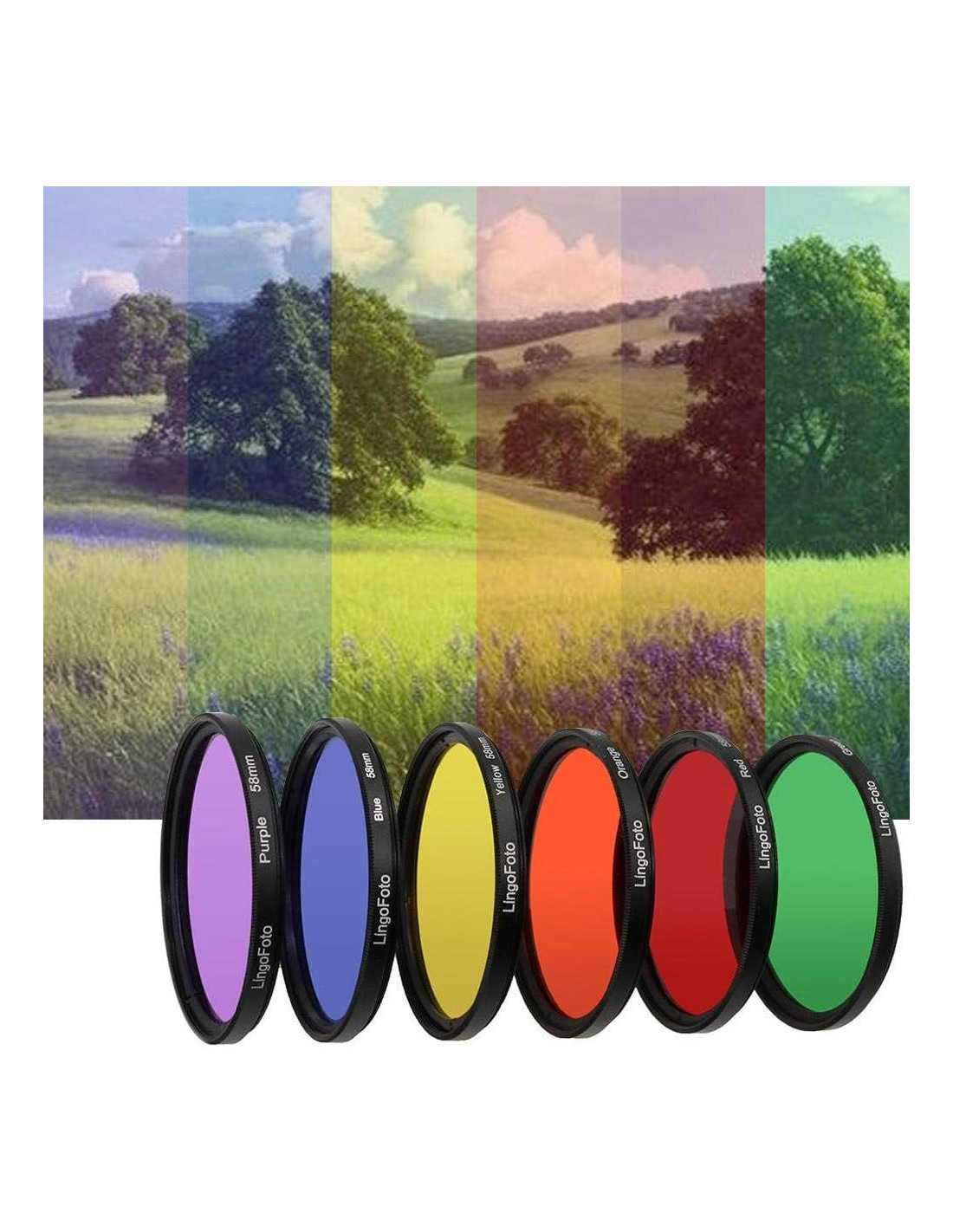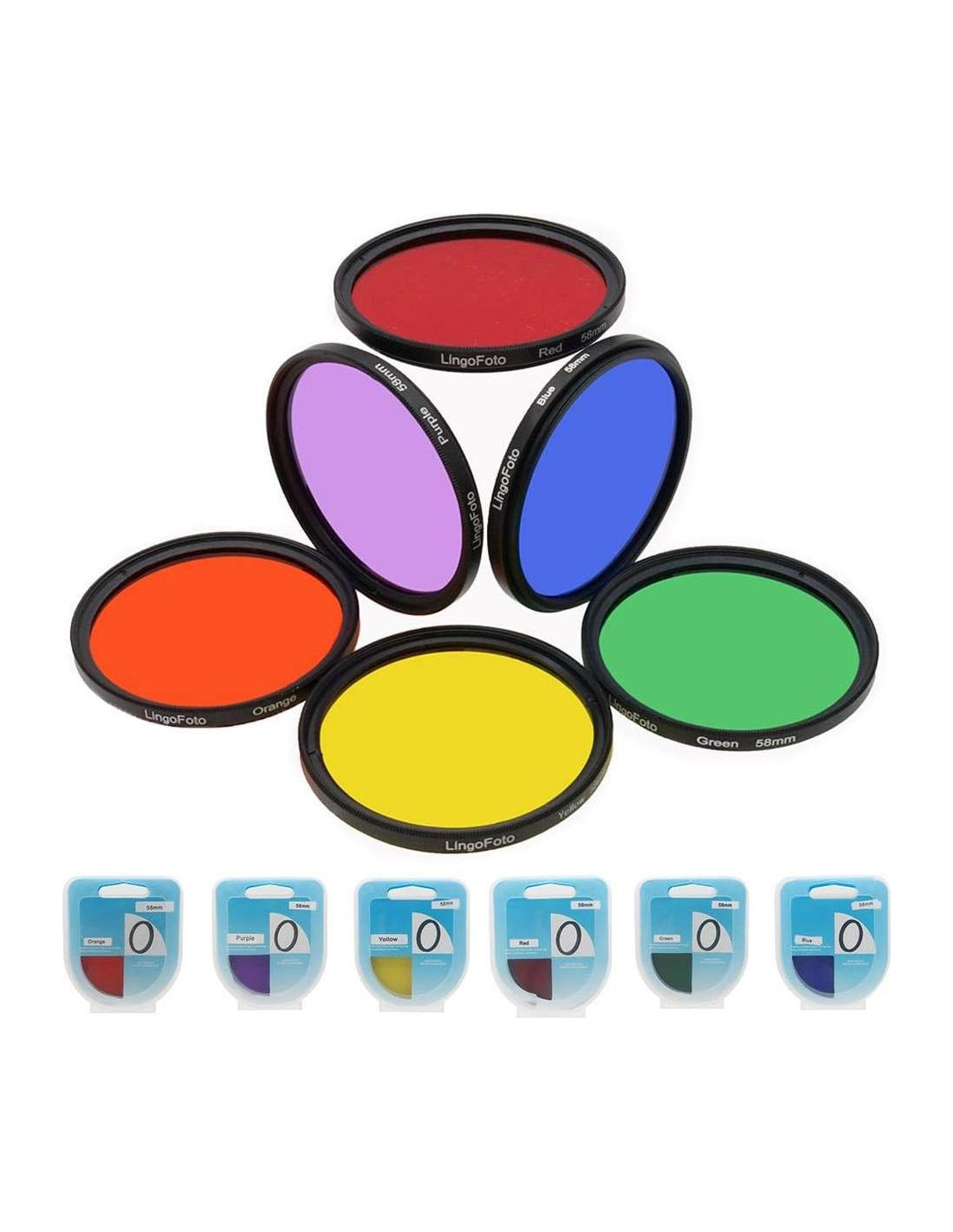Rojo Naranja Amarillo Verde Azul Púrpura + Funda de Filtro de 6 Bolsillos + 3 Herramientas de Limpieza de Lentes (37-82mm) Cada filtro tiene capacidades increíbles; para elaborar, el Filtro UV absorbe los rayos UV del sol y proporciona un contraste más nítido y una imagen vívida. Sirve como un protector de lente permanente contra arañazos, polvo, humedad y huellas dactilares. Mientras tanto, el Filtro CPL elimina la luz polarizada, reduciendo drásticamente los reflejos de superficies no metálicas, como agua, vidrio, etc. También permite que los colores aparezcan más claros con un contraste aumentado. Finalmente, el Filtro FL-D reduce el tono verdoso creado al disparar bajo iluminación fluorescente. Restaura los colores de luz natural a los objetos que estás fotografiando. En comparación, los 4 Filtros Macro HD de 4 Piezas son un poco más simples.