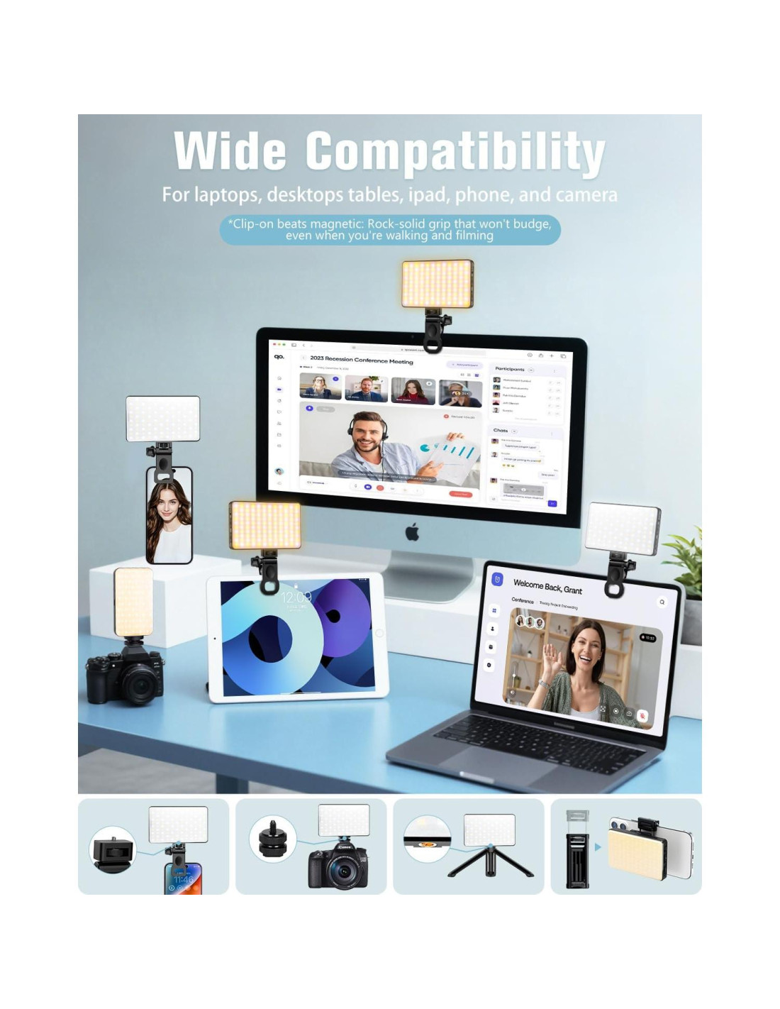 - [Montaje 3 en 1] : 1: Clip frontal (1 pulgada/2.5 cm) se adhiere fácilmente a la parte frontal de tu dispositivo con un botón de rotación de 360, la luz se puede ajustar 120 (para iPhone, tablet, teléfono móvil, computadora de escritorio, laptop). 2: Clip trasero (2.36-3.54 pulgadas) se adhiere de forma segura a la parte trasera de tu teléfono y rota 360, proporcionando iluminación mejorada para fotos o videos usando la cámara trasera. El clip trasero más allá de magnético: experimenta la máxima seguridad de clip para tu luz de teléfono. 3: Un soporte de zapato frío con rosca de 1/4" incrustada para cámaras, trípodes, palos de selfie que puedes llevar contigo en todo momento, haciéndolo ideal para fotografía, video o viajes.