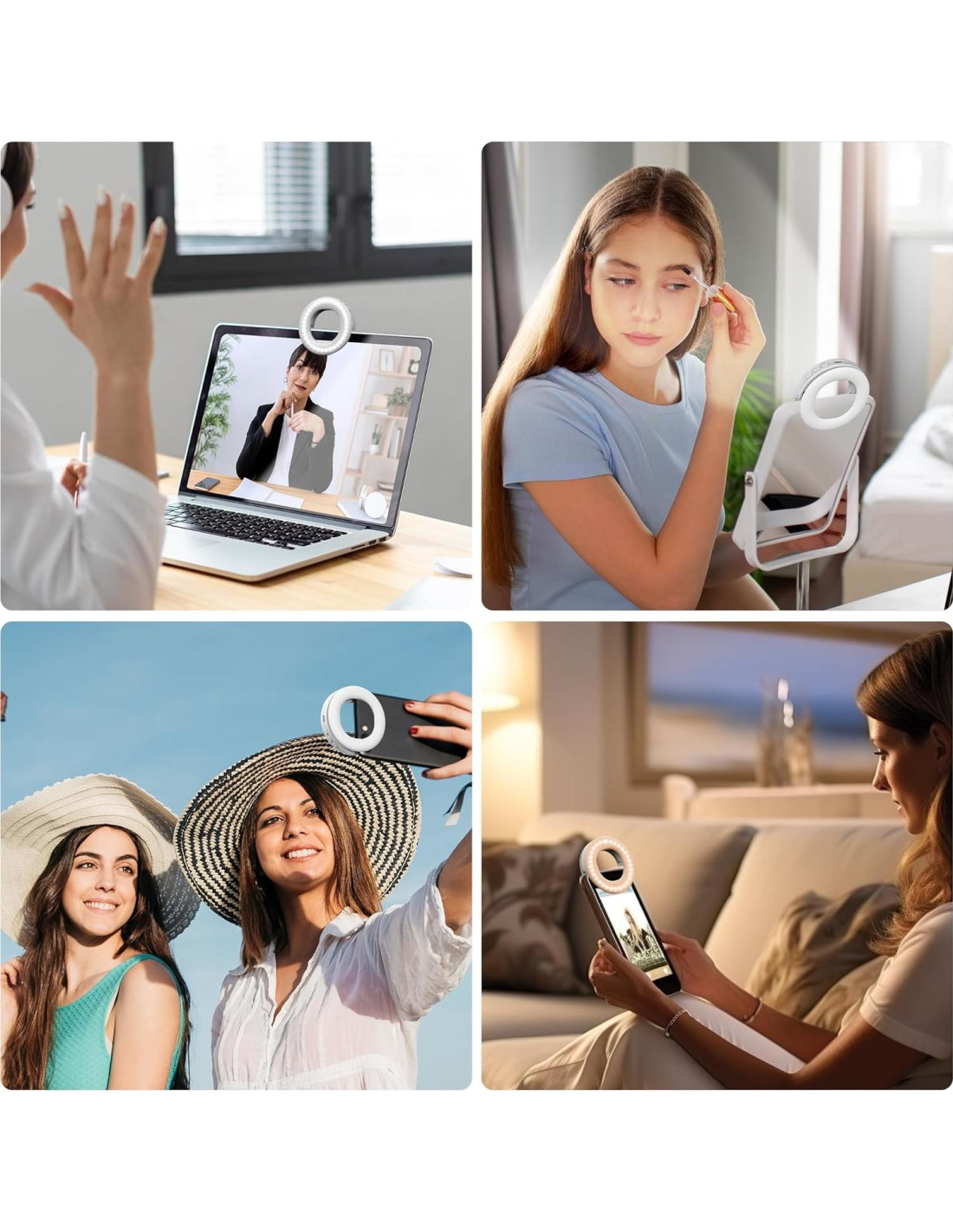- [Aplicación Múltiple] La luz de anillo con clip tiene un amplio rango de uso, puede usarse en selfies, maquillaje, tomar fotos de comida, leer, luz de camping, conferencias, ciclismo y flash. La fina y compacta luz de relleno también puede ser utilizada como regalo para amigas, madres y niños. Te ofrecemos una garantía de 12 meses y un servicio al cliente que resuelve problemas en 24 horas.