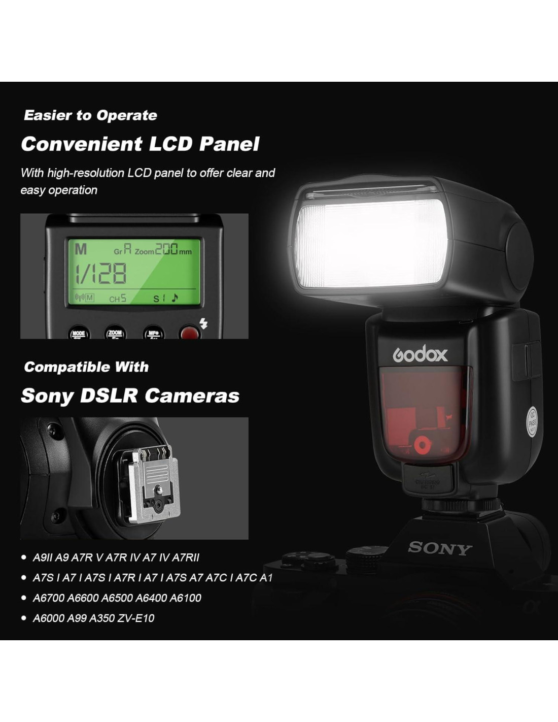 - [Compatibilidad] El flash Speedlite Godox TT600S es compatible con cámaras digitales Sony con zapata caliente estándar. Tanto la transmisión óptica como la transmisión de radio de 2.4G están disponibles, ofreciendo una señal más estable, mayor distancia, mayor rango de aplicación, menor consumo de energía, menos afectado por obstáculos.