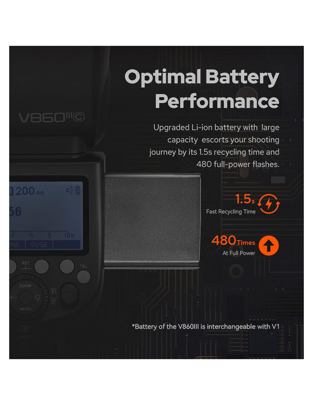 - Botón Rápido para Cambio de Función Manual y TTL: Godox V860Ill tiene un botón rápido en el lado, capaz de cambiar rápidamente del modo manual al modo TTL.