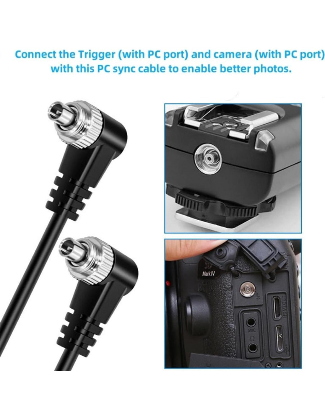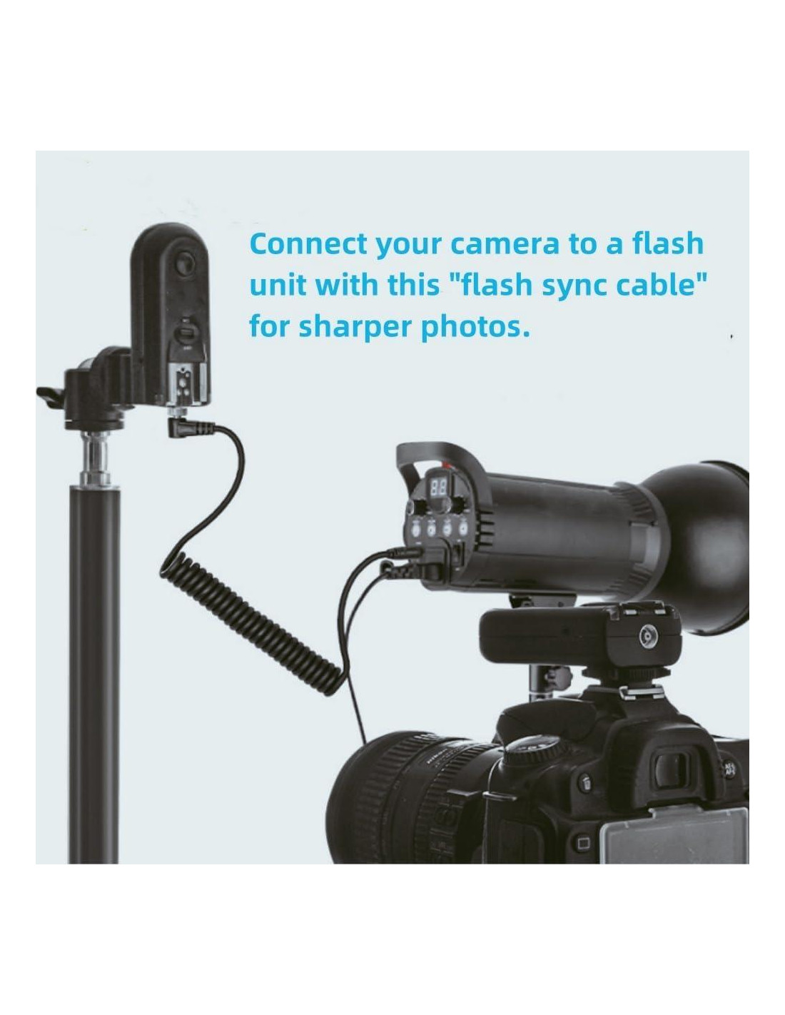 - Longitud óptima para versatilidad: El cable se extiende a 3.2 pies (1 metro), proporcionando una longitud suficiente para que los fotógrafos posicionen sus cámaras y flashes para la configuración de iluminación perfecta.