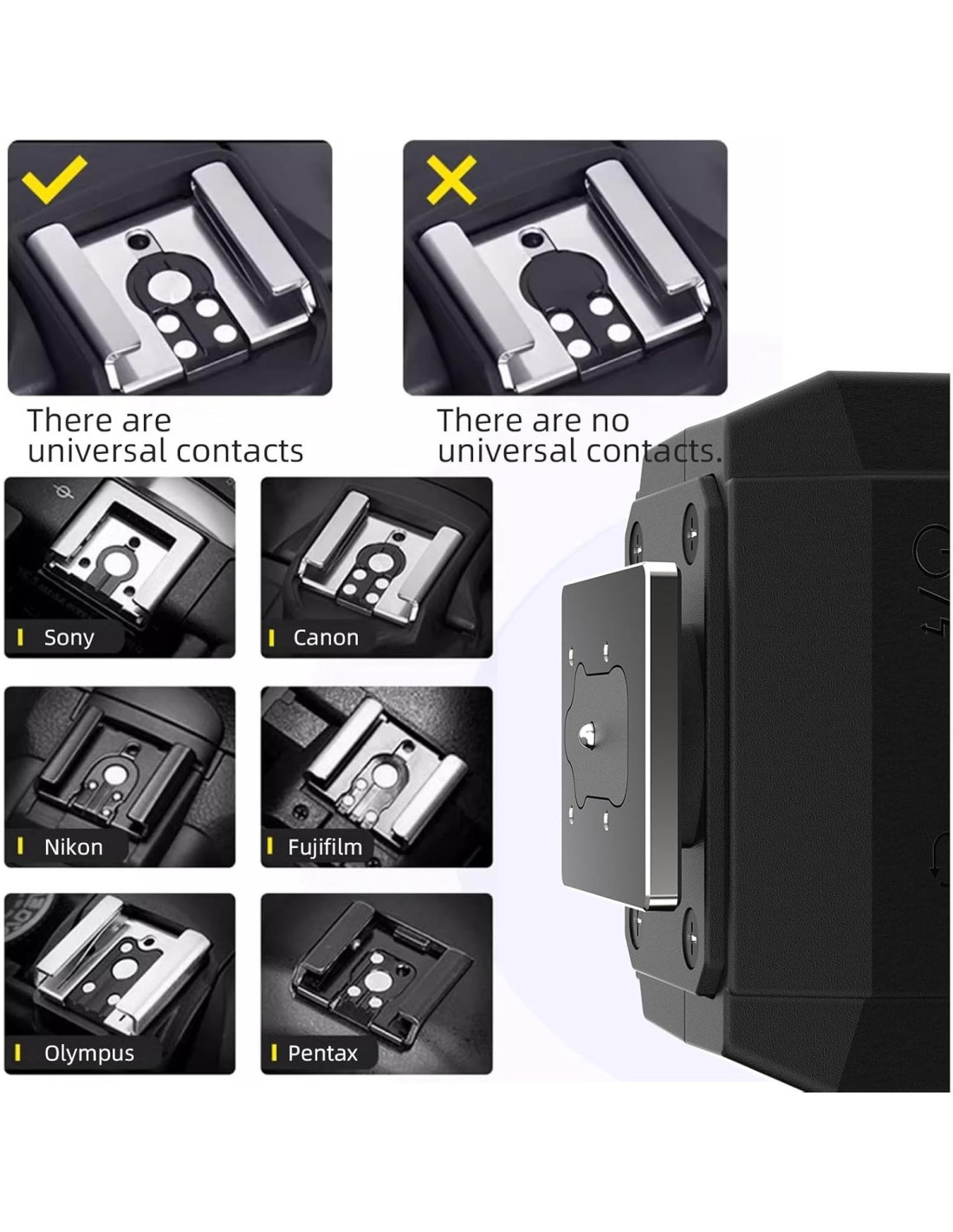- [Zapato Frío Universal para Cámaras de Múltiples Marcas] Este pequeño flash de cámara es perfecto para fotografía con cámaras compactas, sin espejo y cámaras de estilo retro, compatible con Sony Nikon Olympus Canon Fuiifilm PentaX Interfaz de Zapata Fría de Cámara. 1/8 potencia: flash continuo, 1/4 potencia: 2s, 1/2 potencia: 3s, 1/1 potencia: 5s