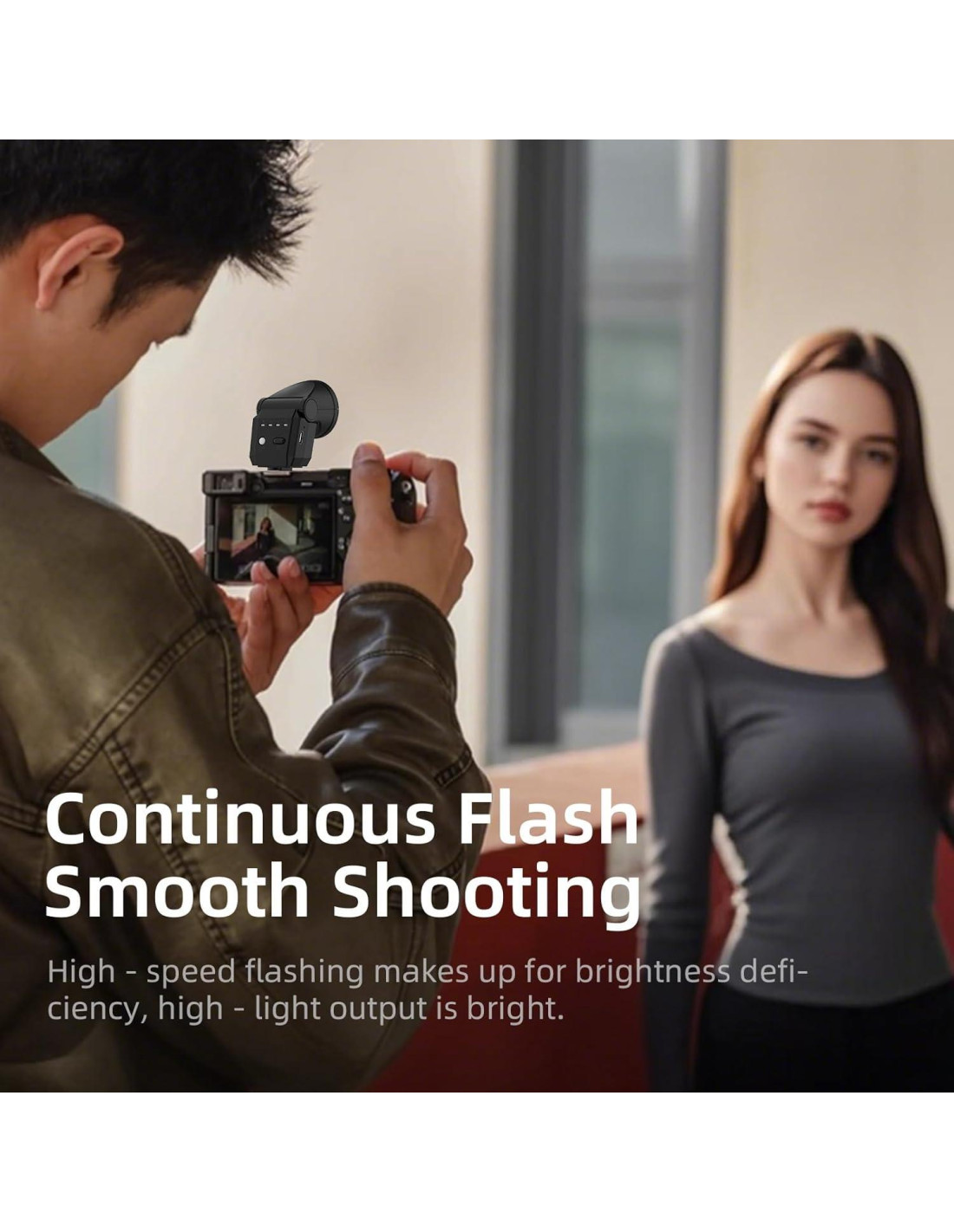 - [Sistema de Flash Continuo que Desafía la Oscuridad] No se ve afectado por condiciones de poca luz, nuestro flash de alta velocidad pulsa rápidamente para mantener una salida de brillo constante. La batería incorporada de 300mAh, bajo la potencia 1/1, mini flash entrega hasta 375 destellos a plena potencia, mientras que la carga rápida tipo C (carga completa en 1 hora), soporta carga mientras se usa, asegurando disparos ininterrumpidos durante aventuras al aire libre.