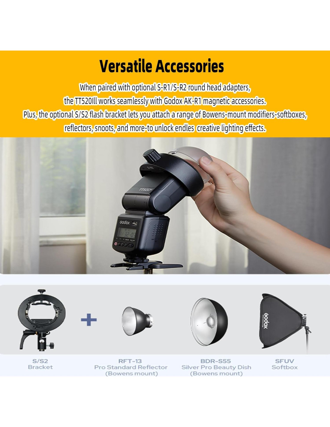 - Diseño de Zapata Universal--Con un diseño de zapata de contacto único, el TT520III es ampliamente compatible con Canon, con Nikon, con Fujifilm, con Panasonic, con Olympus y otras cámaras, asegurando un ajuste perfecto en tu equipo.
