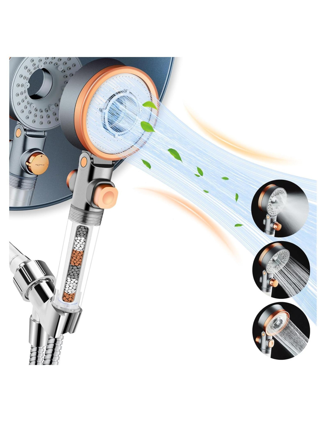 - 3 Modos Ajustables, Disfruta de la Diversión de Diferentes Flujos: 3 modos de spray ideales para toda tu familia. El modo hydro jet presuriza el agua para masajear tu piel, permitiéndote experimentar la gran sensación de estar envuelto en agua tibia. El modo de lluvia logra una salida de agua completa, brindándote una experiencia de ducha relajante. El modo de niebla suave atomiza el agua en millones de pequeñas gotas, cubriendo 10 veces más áreas de superficie que una ducha ordinaria, pero utiliza un 70% menos de agua. Crea un SPA cómodo para tu piel