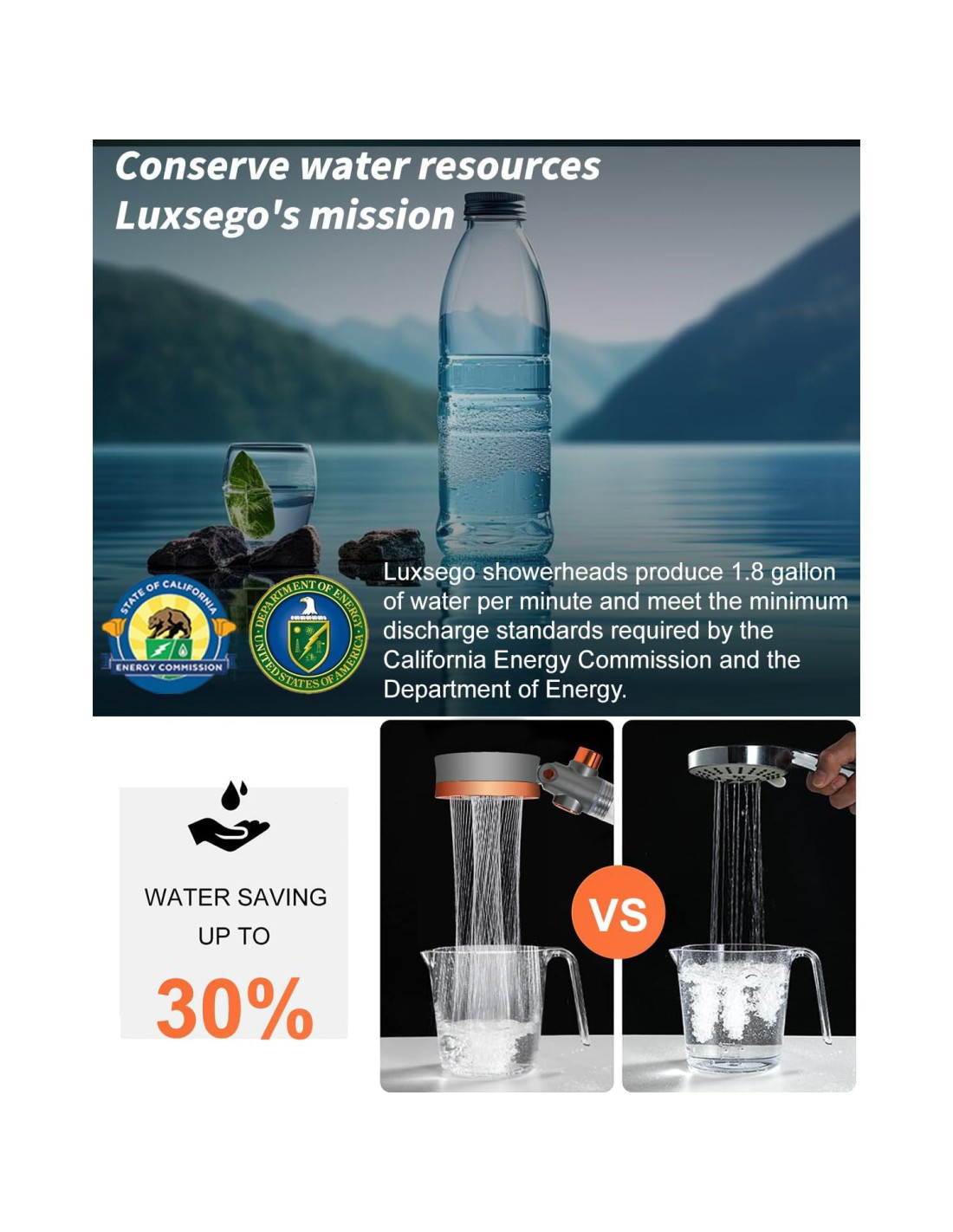 - Comienza Tu Día con Impresionante Presión de Agua: El cabezal de ducha de alta presión Luxsego adopta la tecnología de micro boquilla para hacer que los agujeros de salida sean más pequeños y densos, mejorando así la velocidad del flujo de agua, aumentando así la presión de agua en un 200% y ahorrando hasta un 30% de agua en comparación con una ducha de mano ordinaria. Y la fuerza del flujo de agua se puede ajustar libremente mediante la perilla, amigable con la piel del bebé