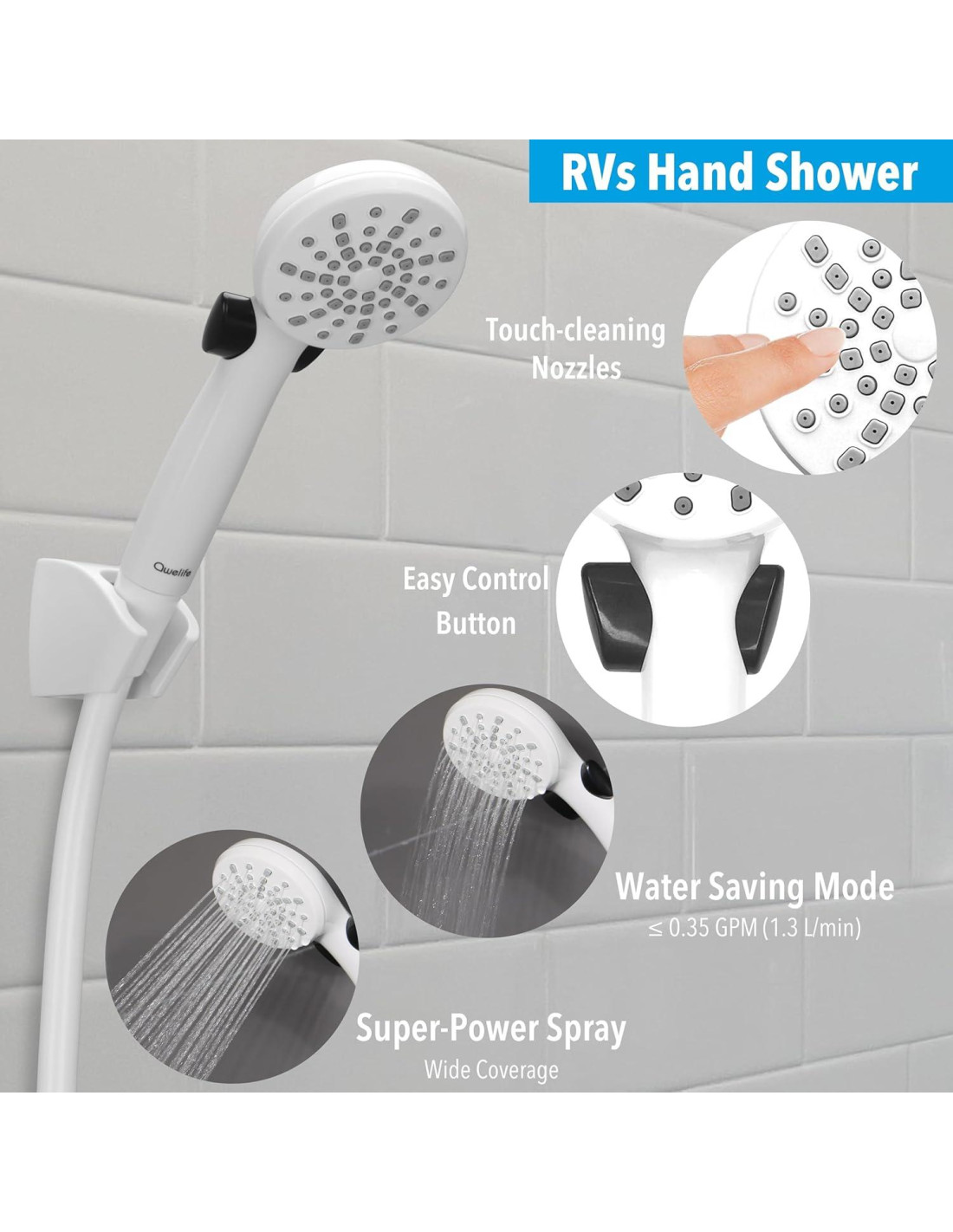 - Cabezal de ducha de mano para RV / Camper con manguera e interruptor de encendido y apagado (flujo de agua pequeño), incluye todos los accesorios necesarios