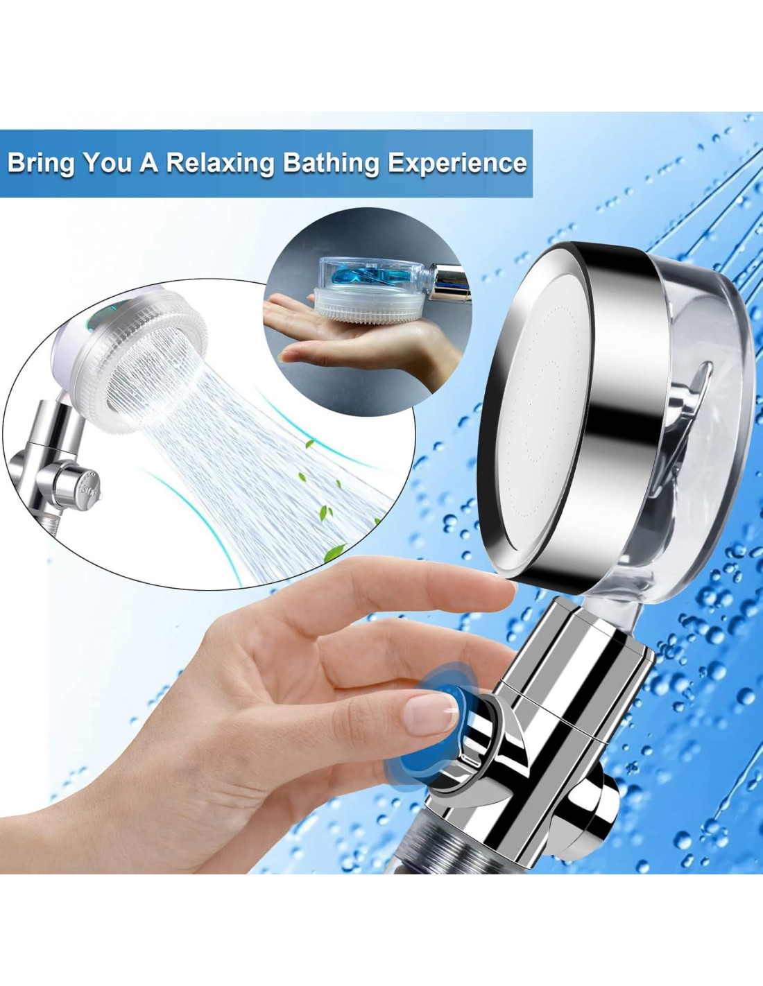 - [Cabezal de Ducha Filtrado de Alta Presión] Con un diseño transparente y visible, nuestro cabezal de ducha turboalimentado es desmontable. El diseño de micro boquilla hace que los agujeros de salida sean más pequeños y el turboventilador aumenta la velocidad del flujo de agua, aumentando así el 200% de la presión del agua y ahorrando hasta un 30% de agua simultáneamente. El modo de chorro de agua potente te ayuda a lavar burbujas de jabón en unos segundos. Adecuado para edificios de gran altura y apartamentos